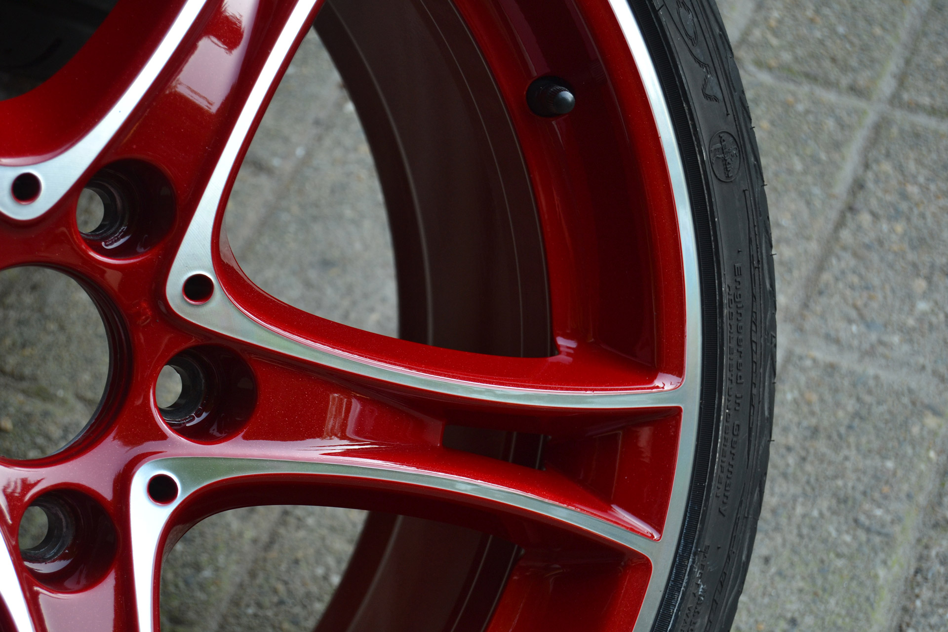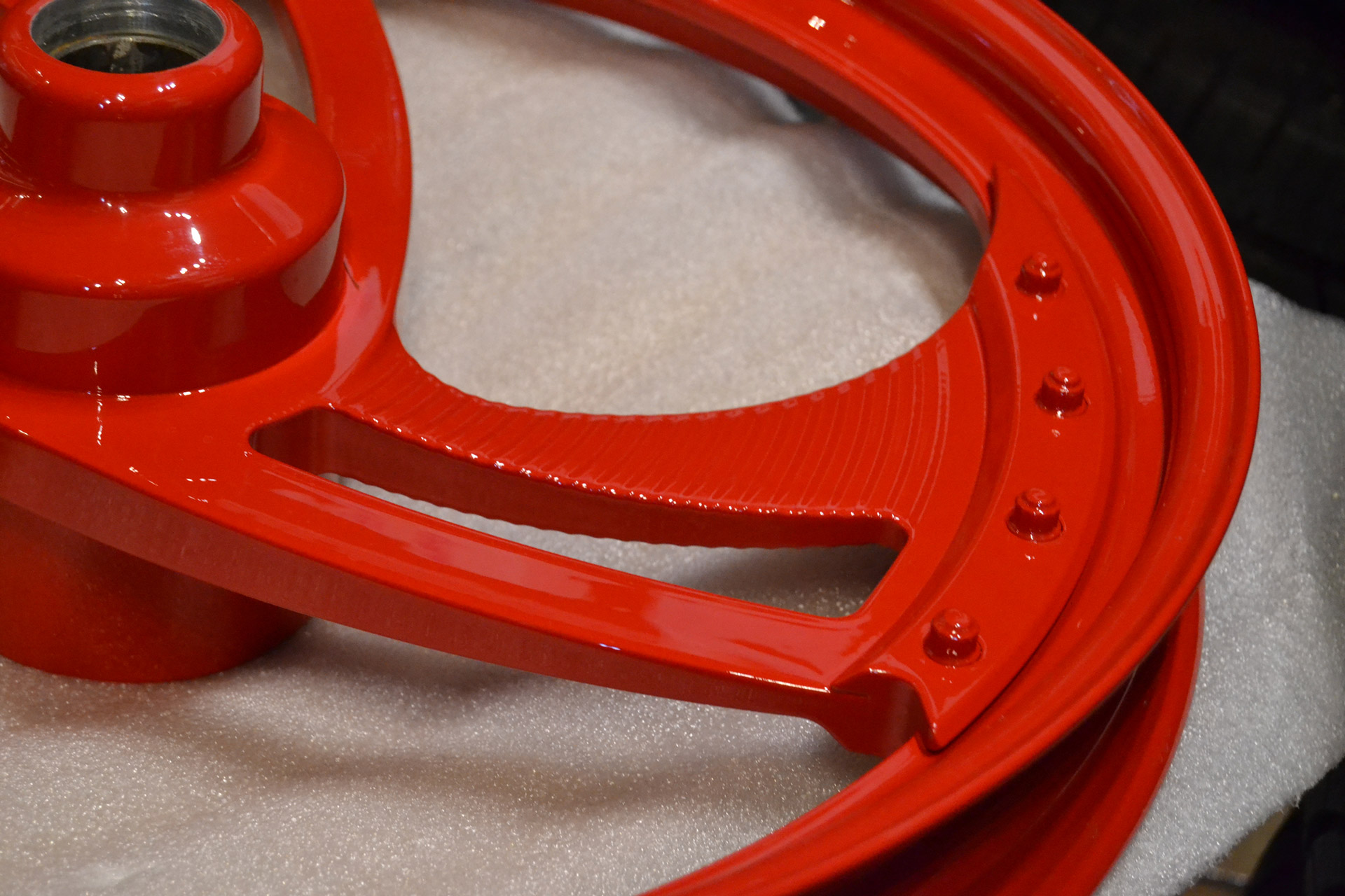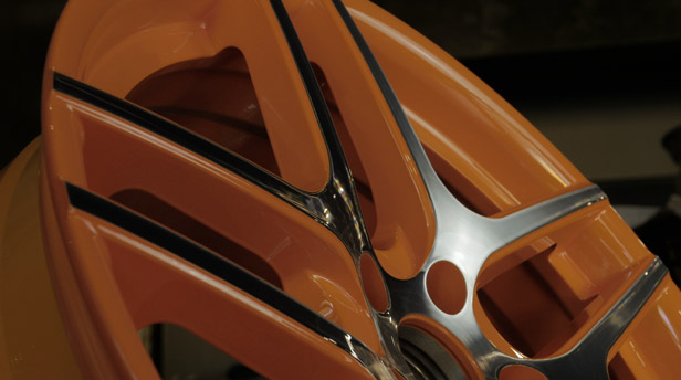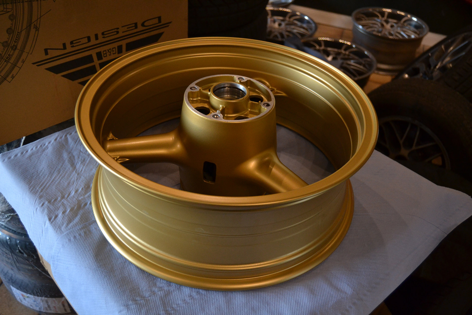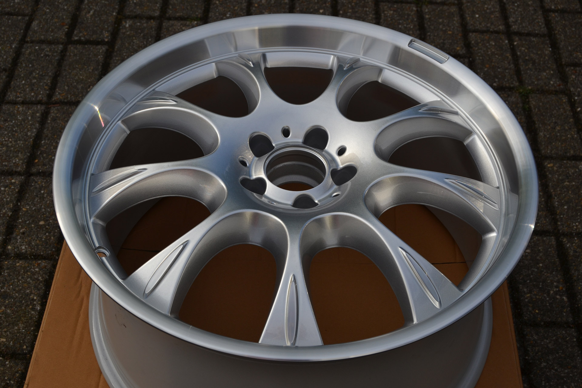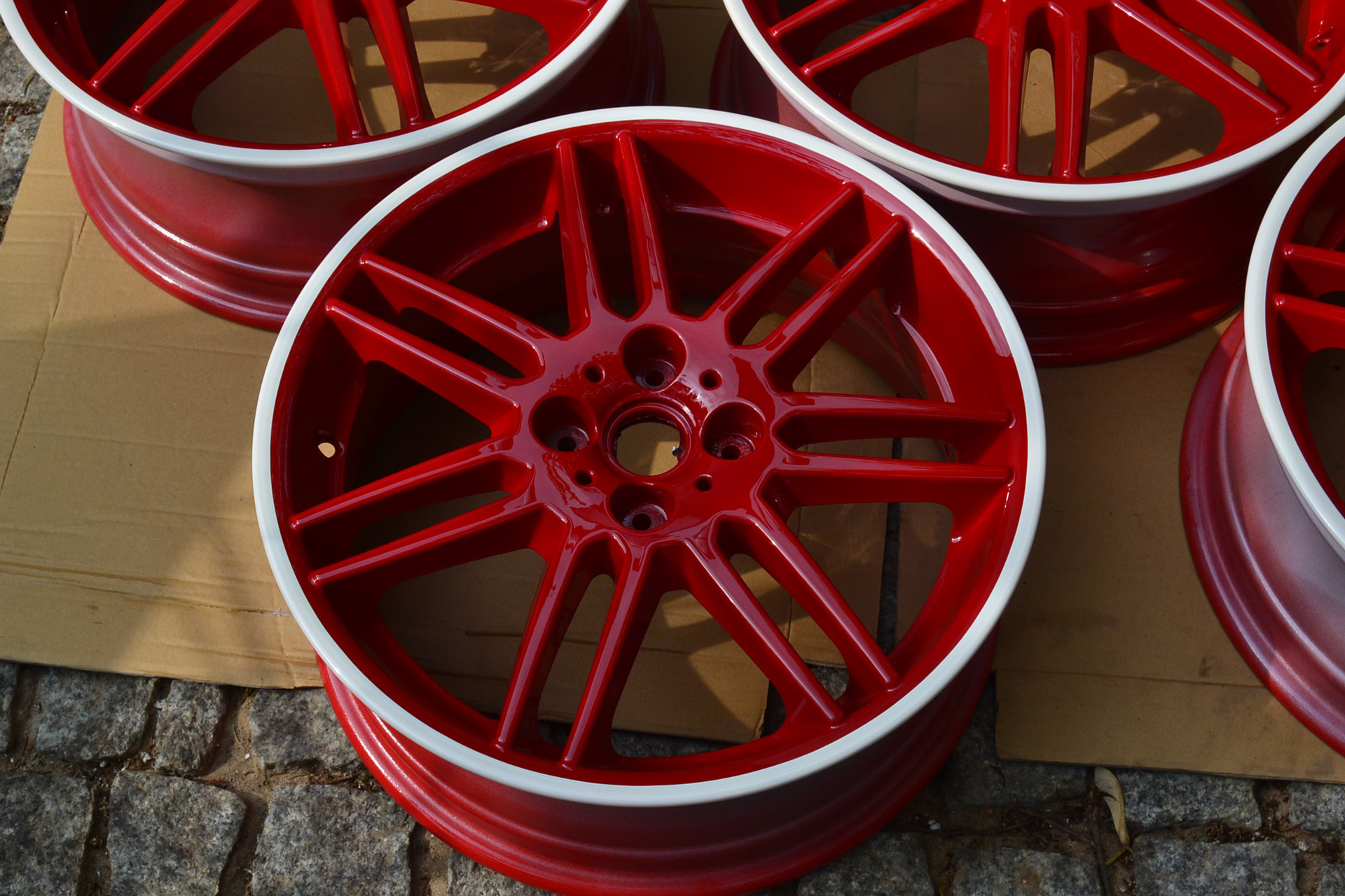 Nach dem Pulverbeschichten können die Teile auf Wunsch an bestimmten Stellen poliert werden und zum Schutz der polierten Flächen ergänzend Klar beschichtet werden (z.B. das Felgenbett wie es auf dem Bild unterhalb zu sehen ist).