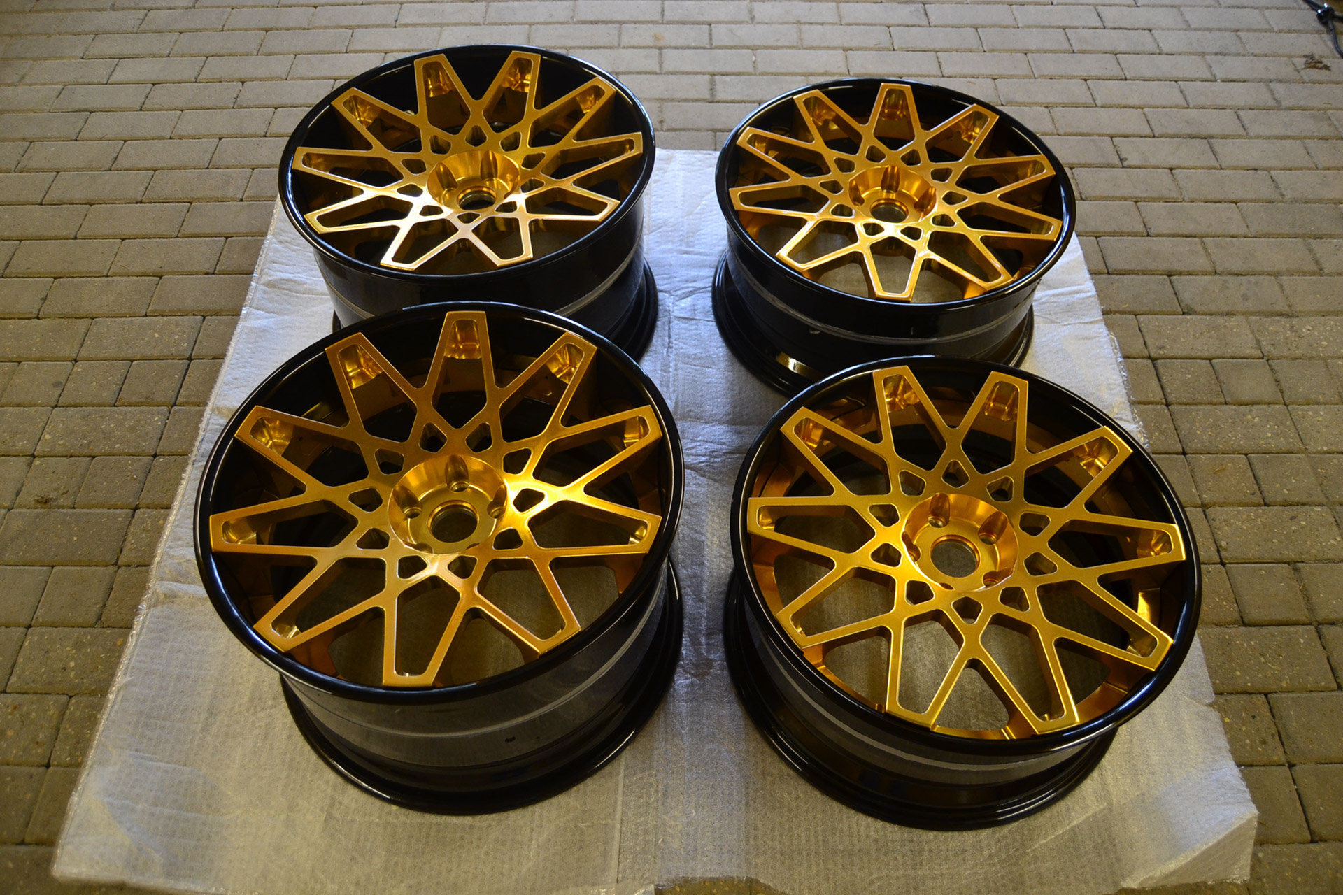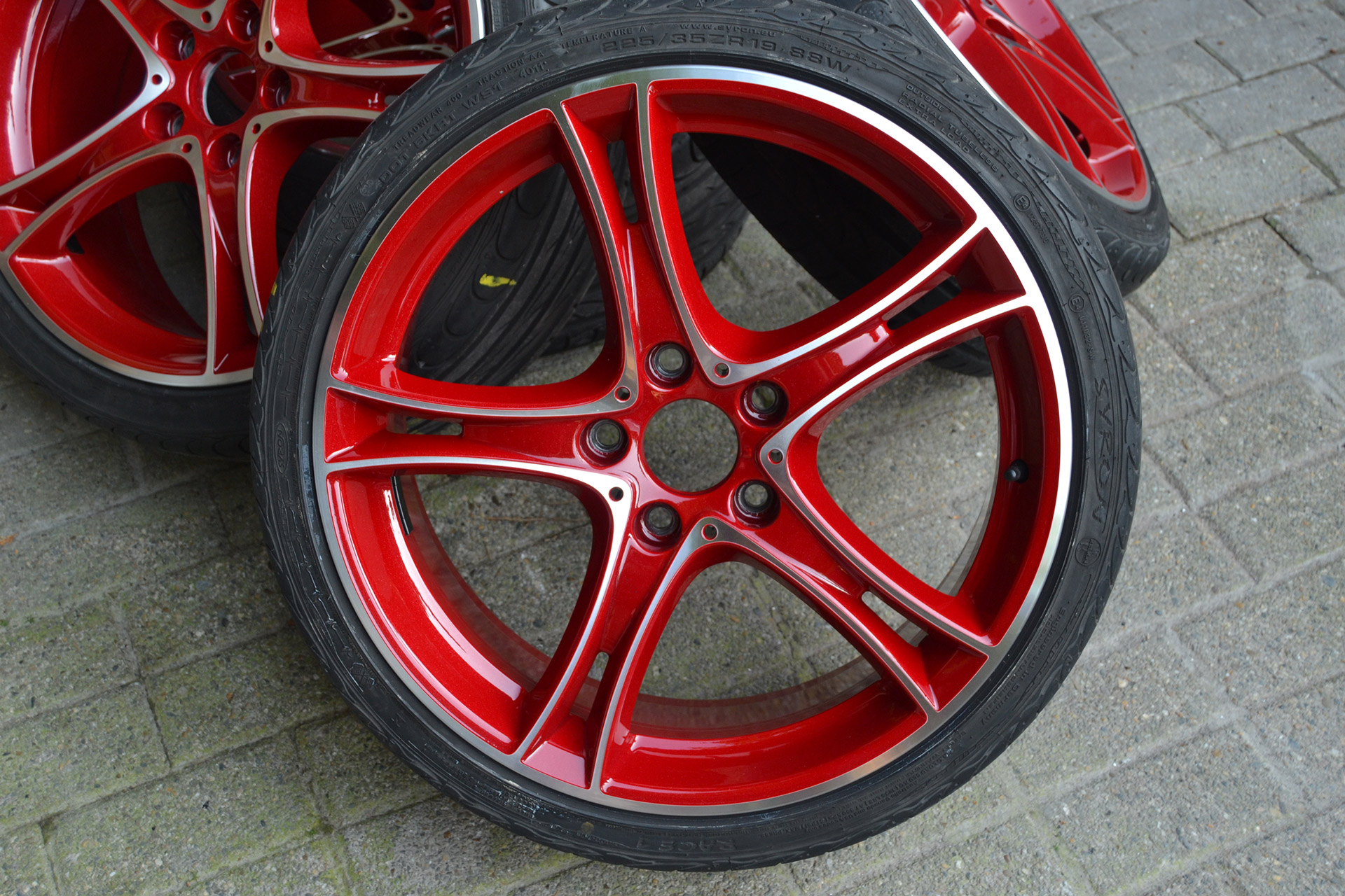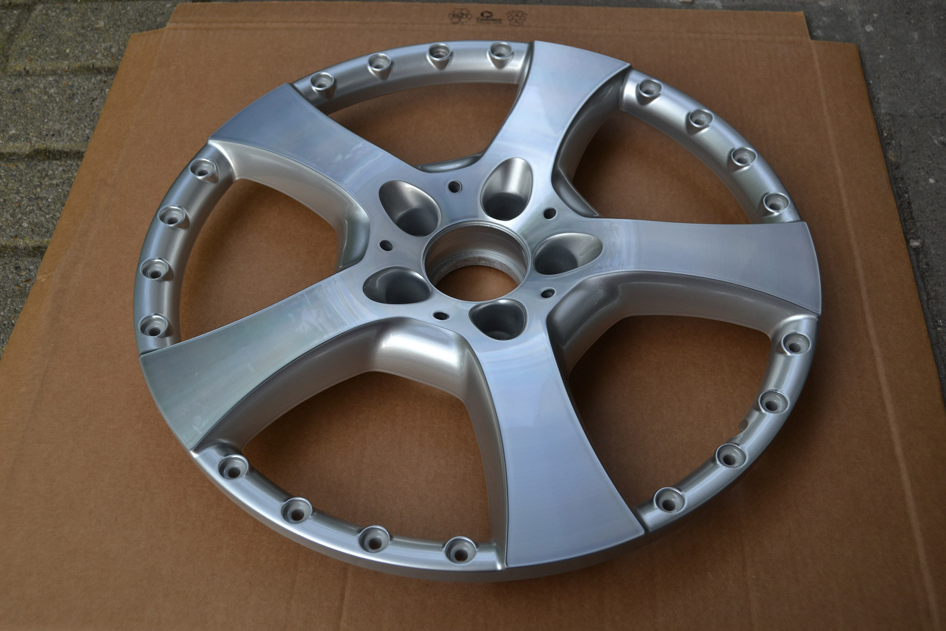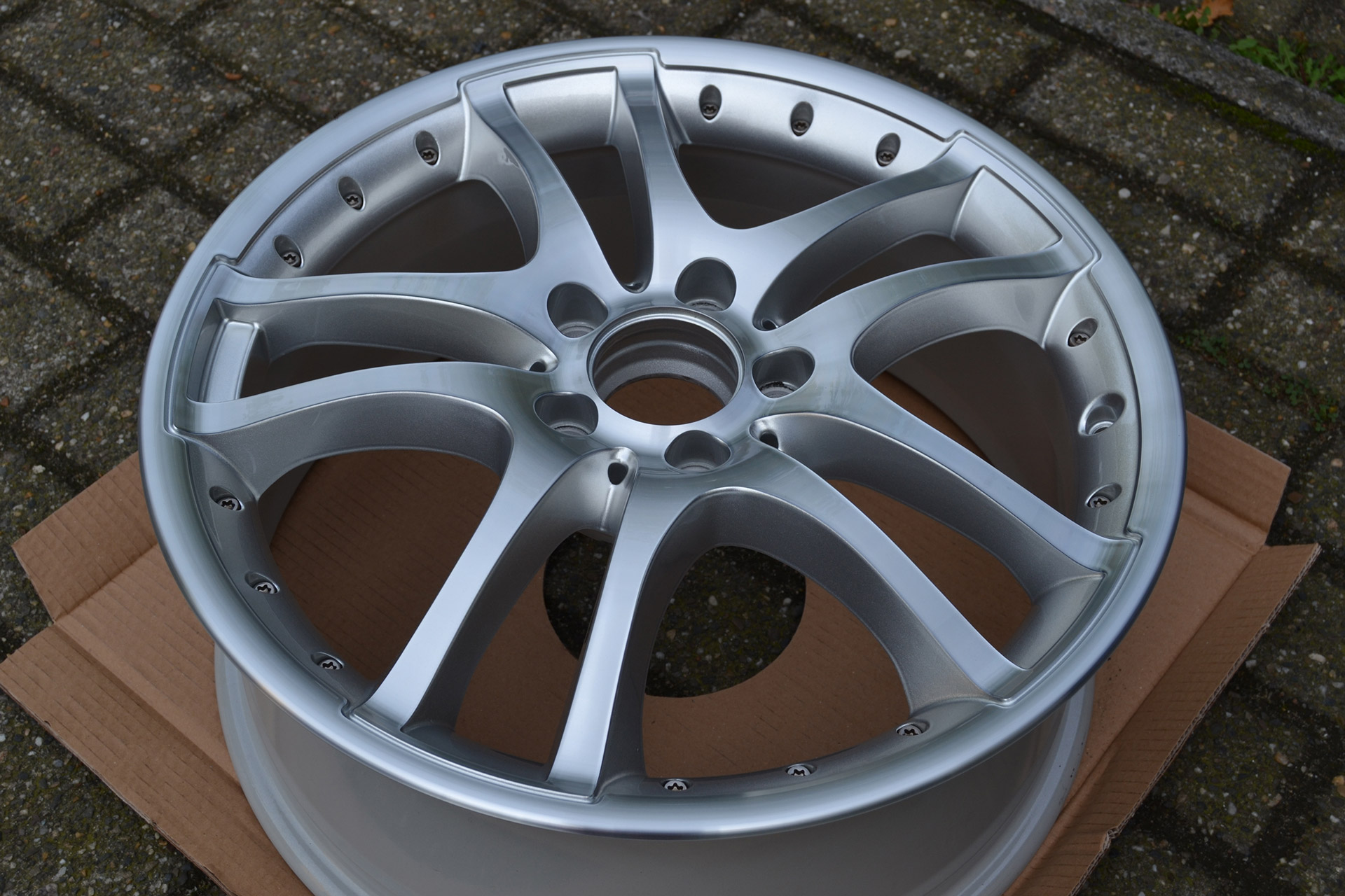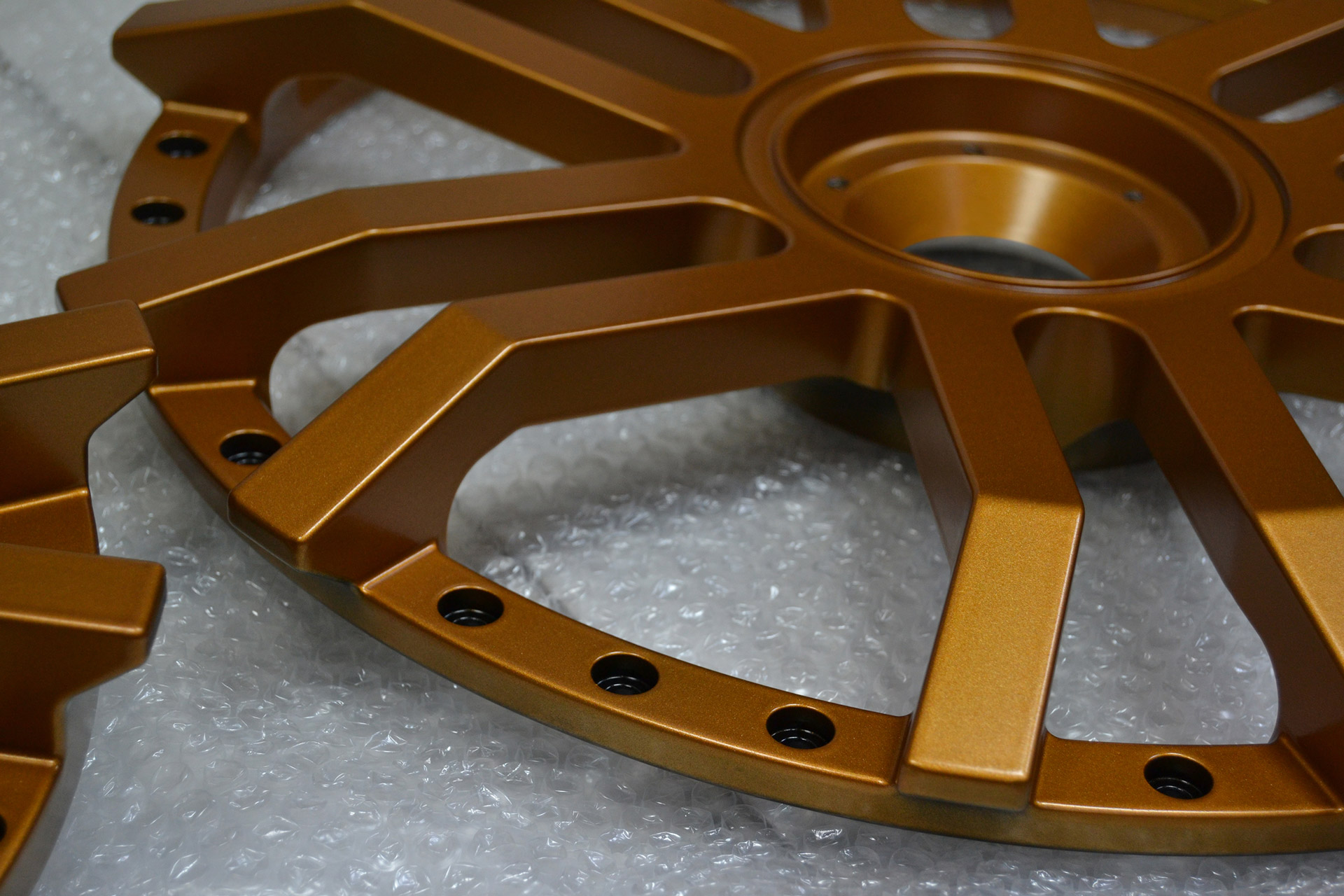 Nach dem Pulverbeschichten können die Teile auf Wunsch an bestimmten Stellen poliert werden und zum Schutz der polierten Flächen ergänzend Klar beschichtet werden (z.B. das Felgenbett wie es auf dem Bild unterhalb zu sehen ist).