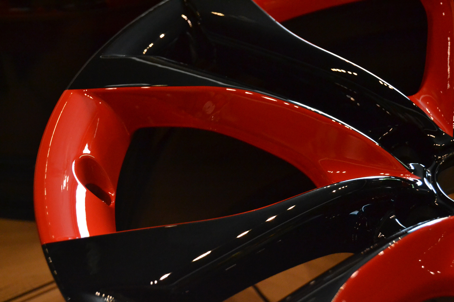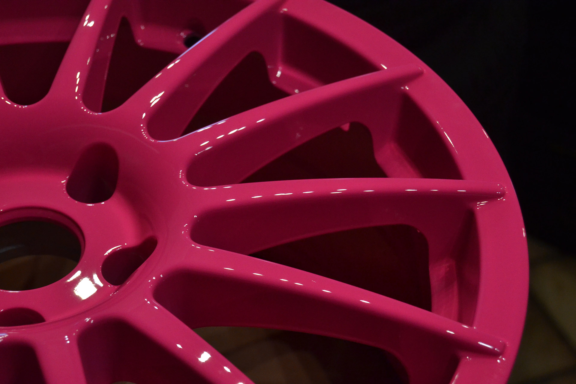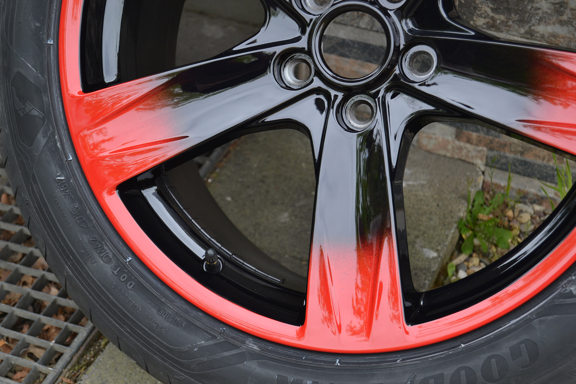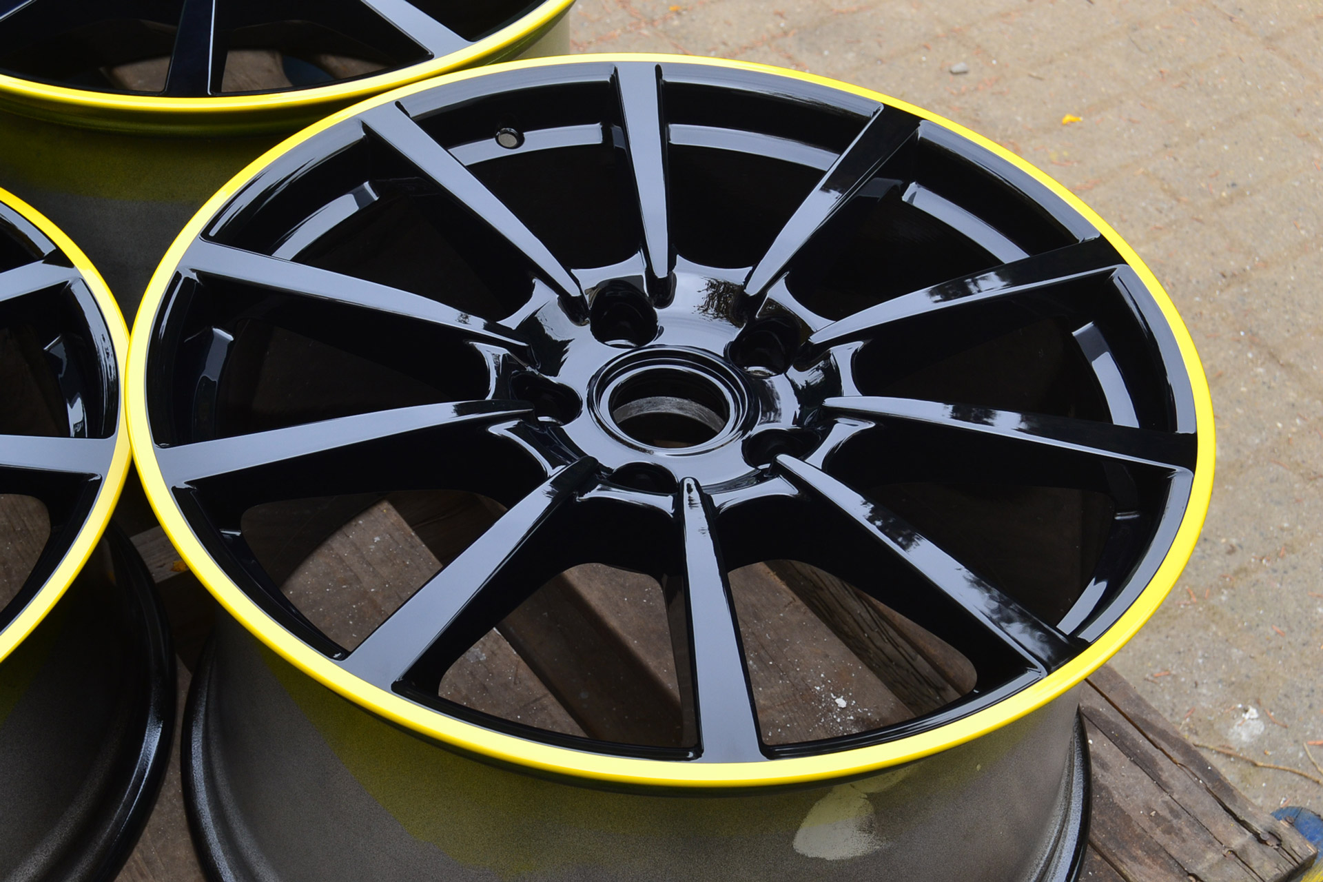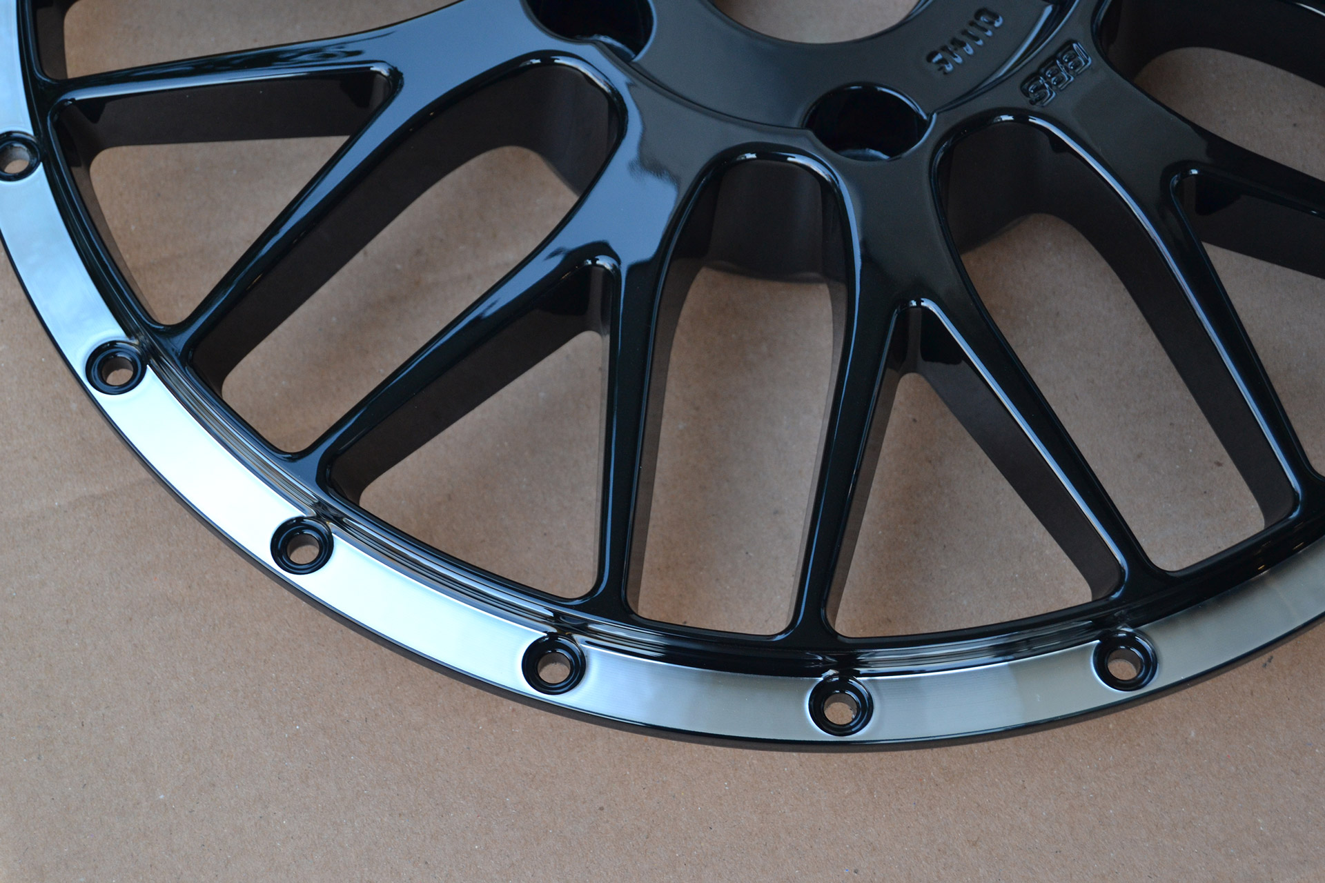 Nach dem Pulverbeschichten können die Teile auf Wunsch an bestimmten Stellen poliert werden und zum Schutz der polierten Flächen ergänzend Klar beschichtet werden (z.B. das Felgenbett wie es auf dem Bild unterhalb zu sehen ist).