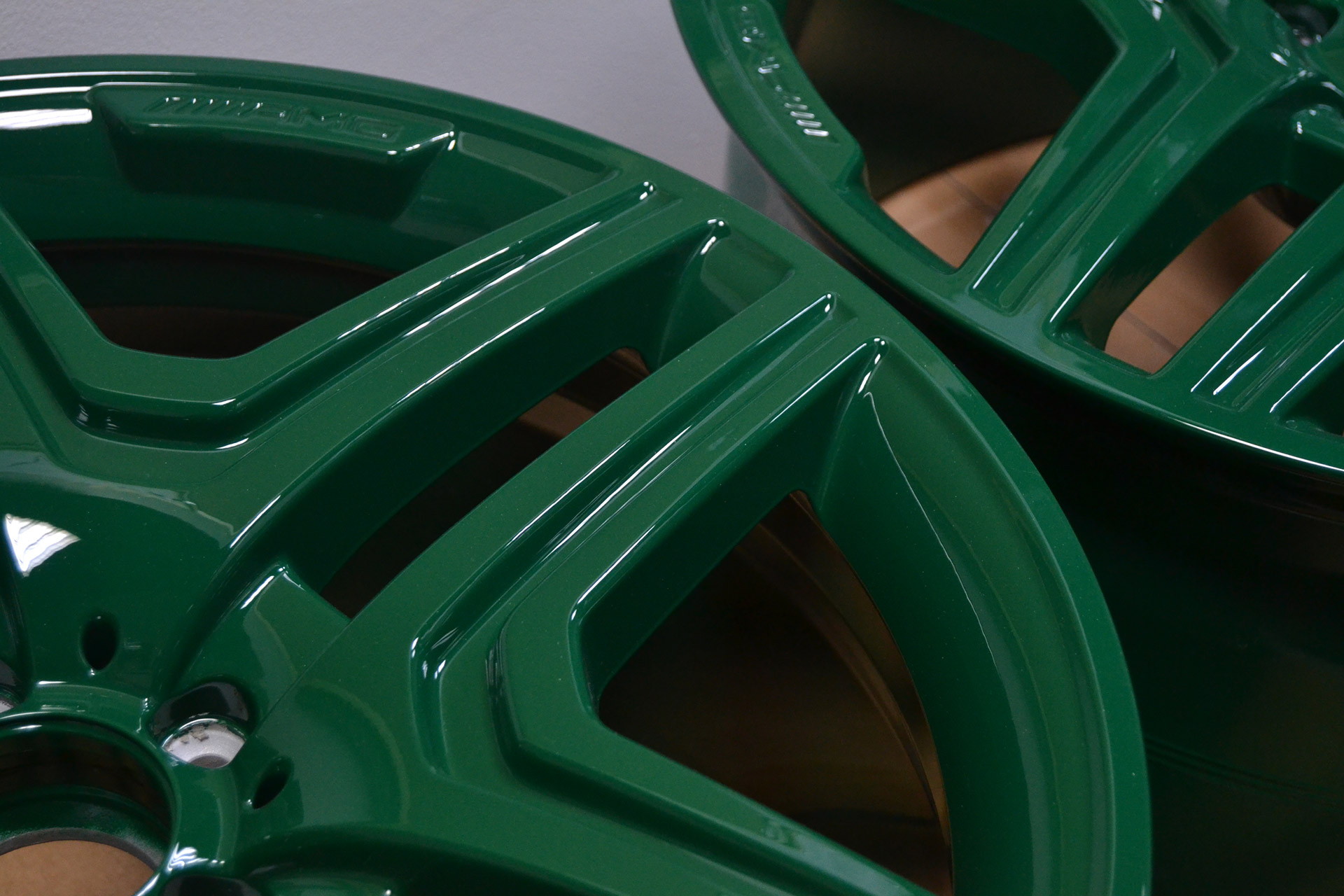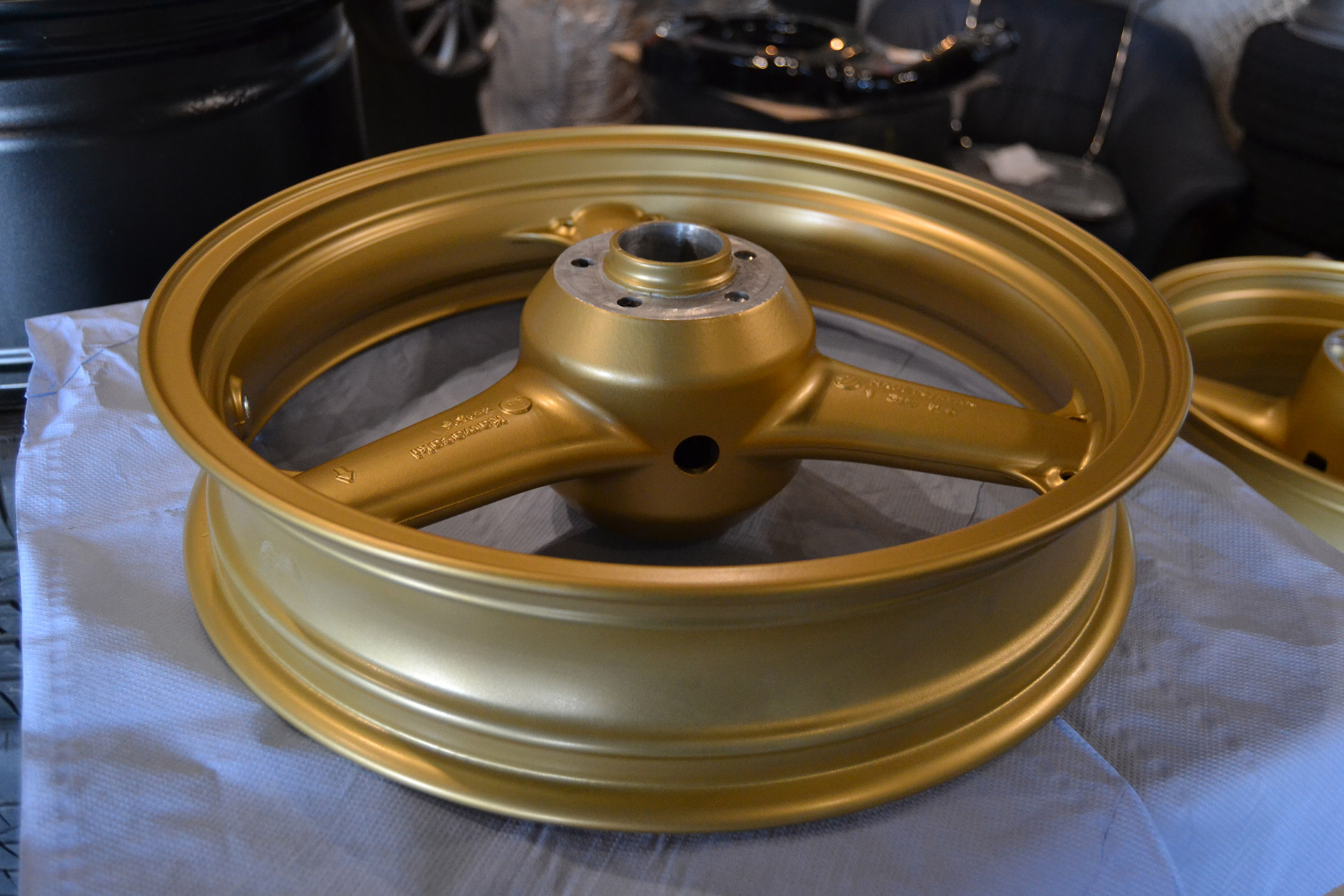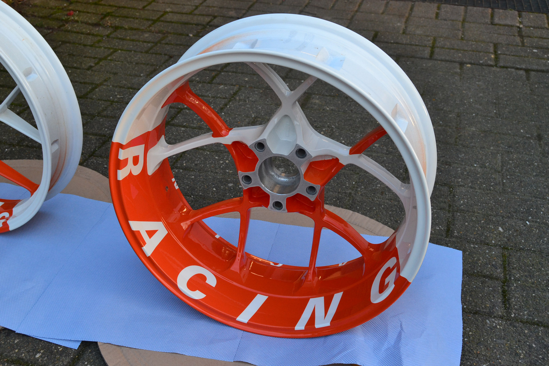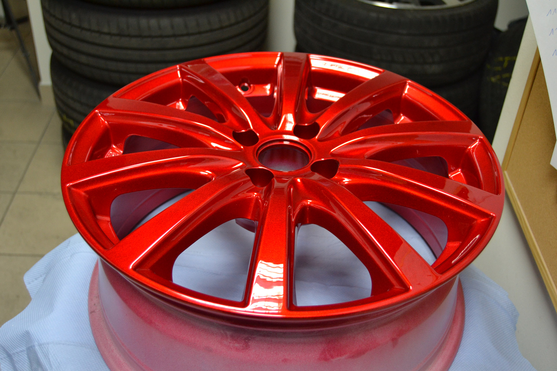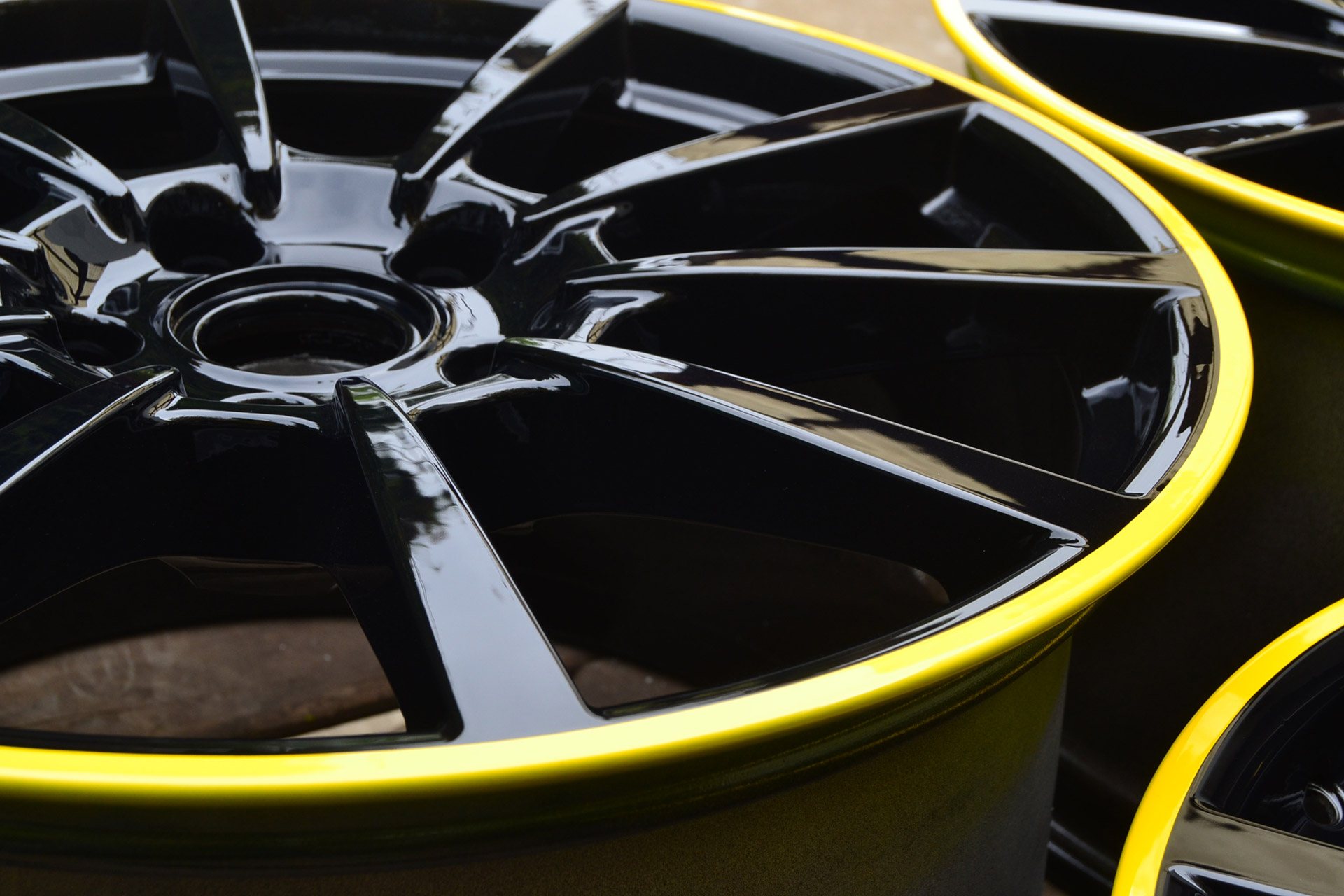 Nach dem Pulverbeschichten können die Teile auf Wunsch an bestimmten Stellen poliert werden und zum Schutz der polierten Flächen ergänzend Klar beschichtet werden (z.B. das Felgenbett wie es auf dem Bild unterhalb zu sehen ist).