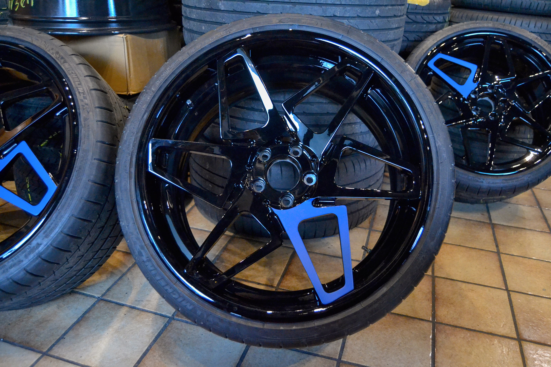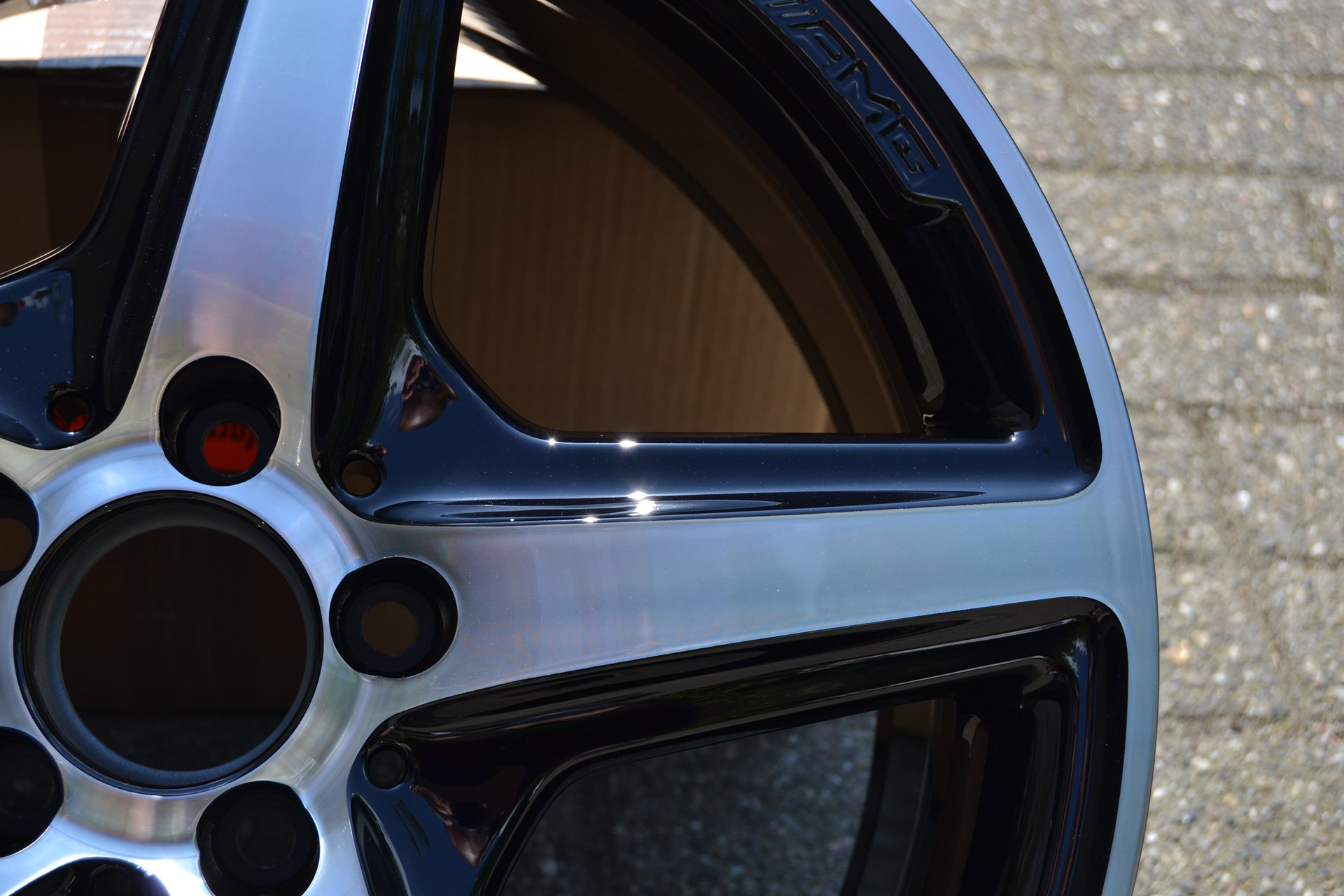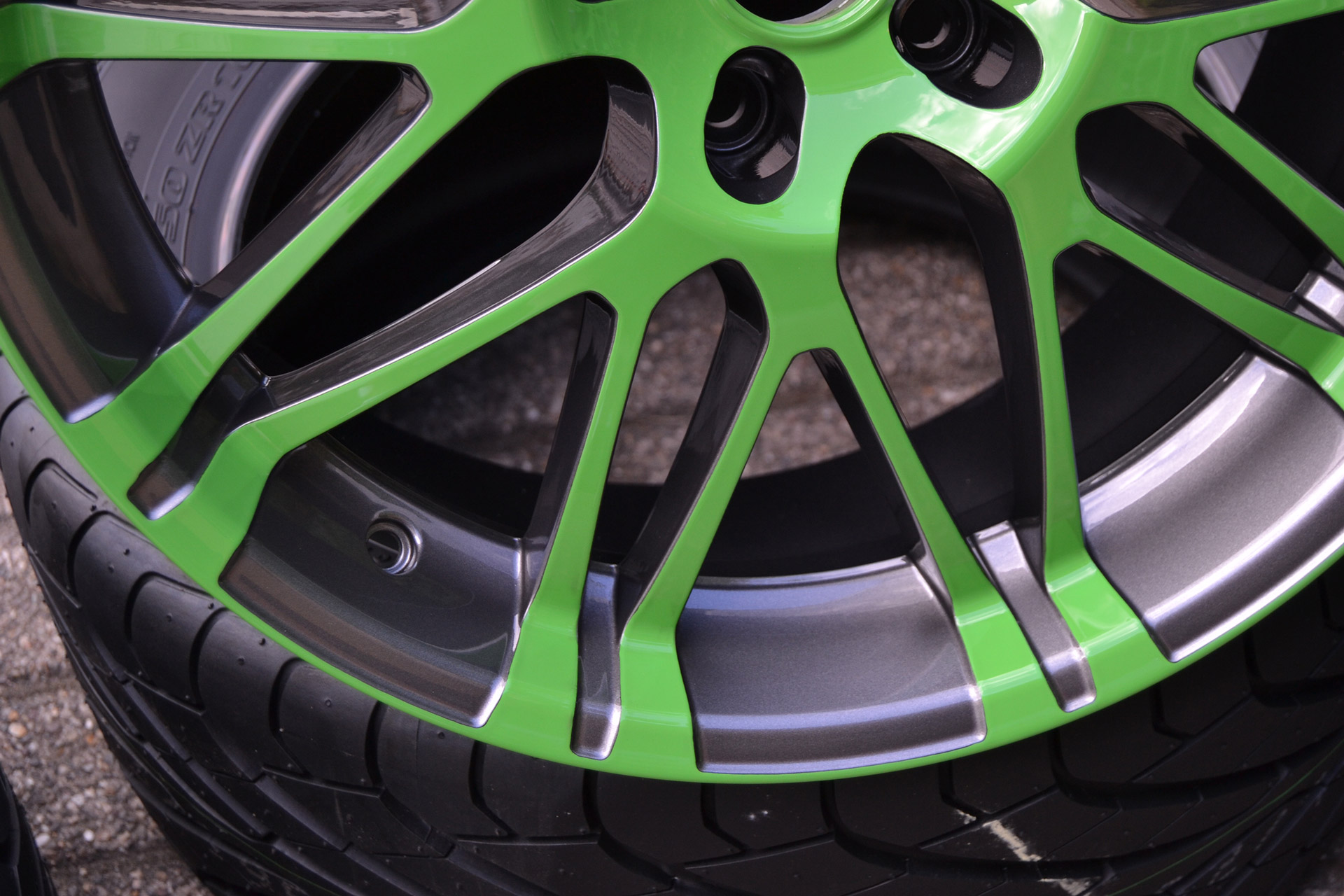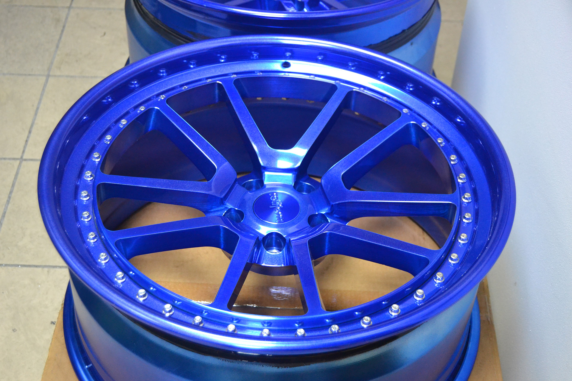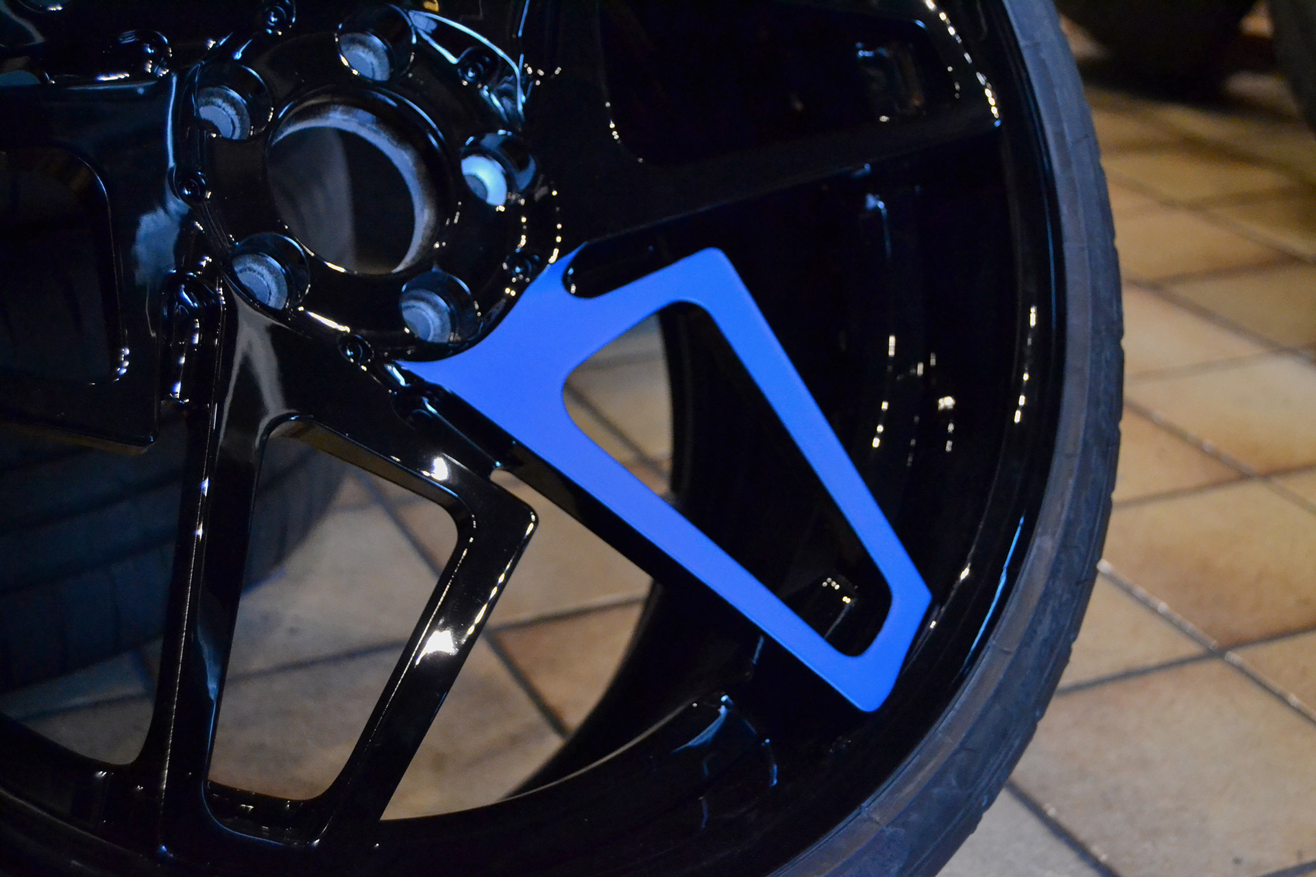 Nach dem Pulverbeschichten können die Teile auf Wunsch an bestimmten Stellen poliert werden und zum Schutz der polierten Flächen ergänzend Klar beschichtet werden (z.B. das Felgenbett wie es auf dem Bild unterhalb zu sehen ist).