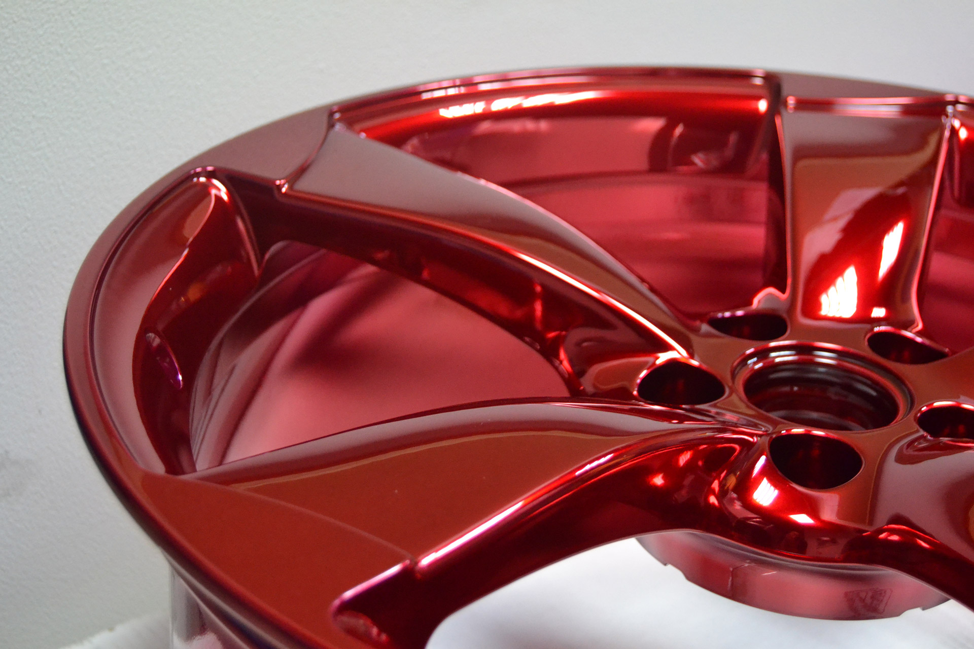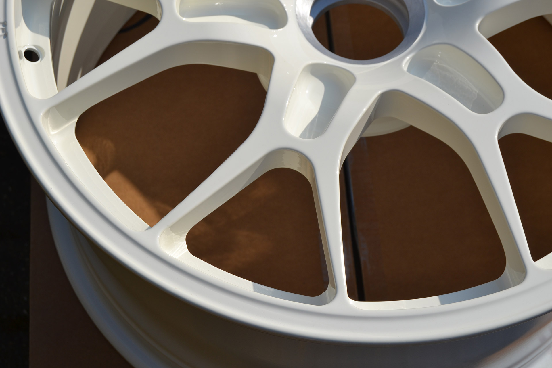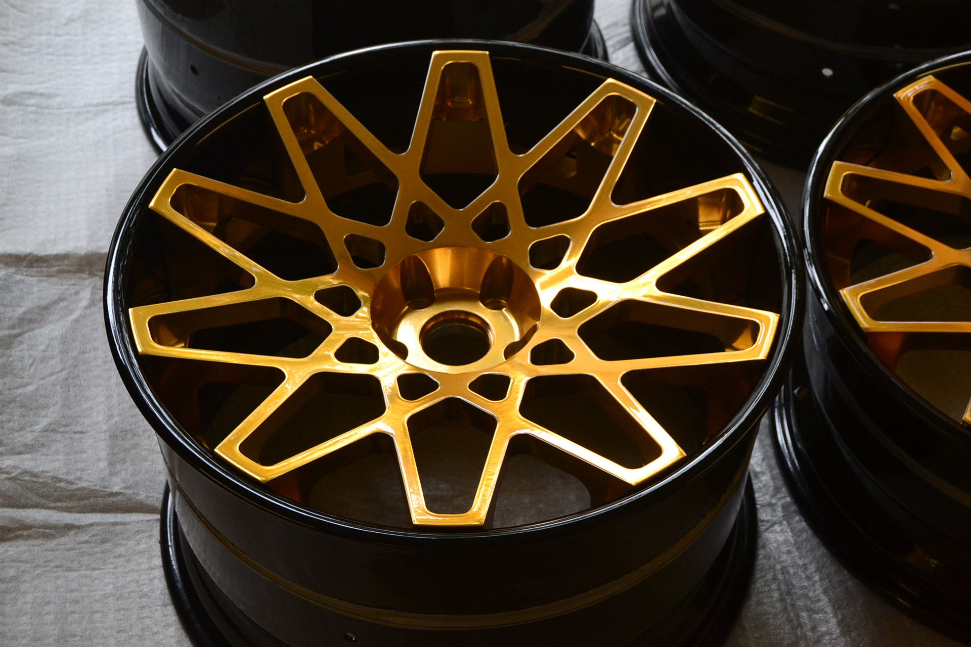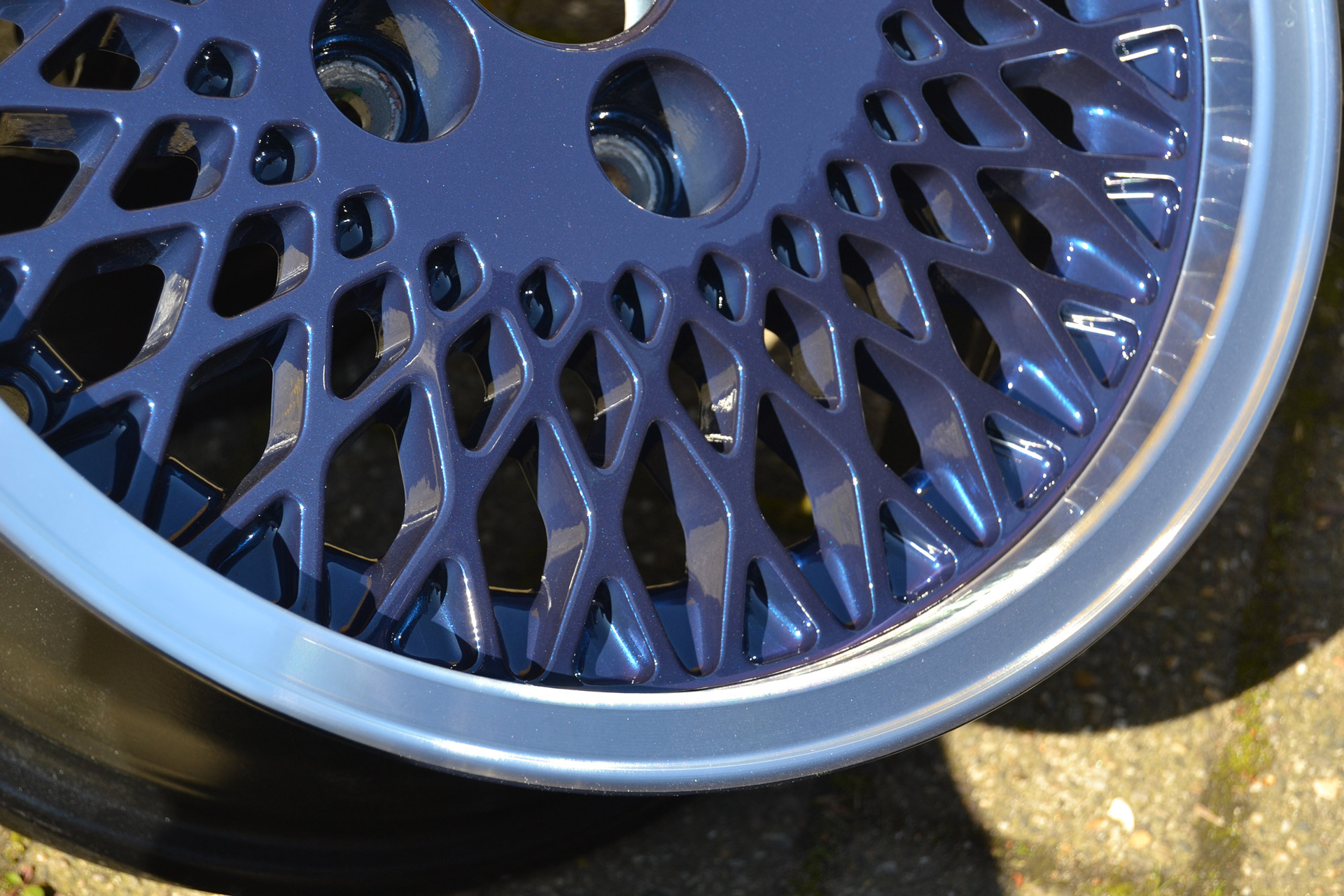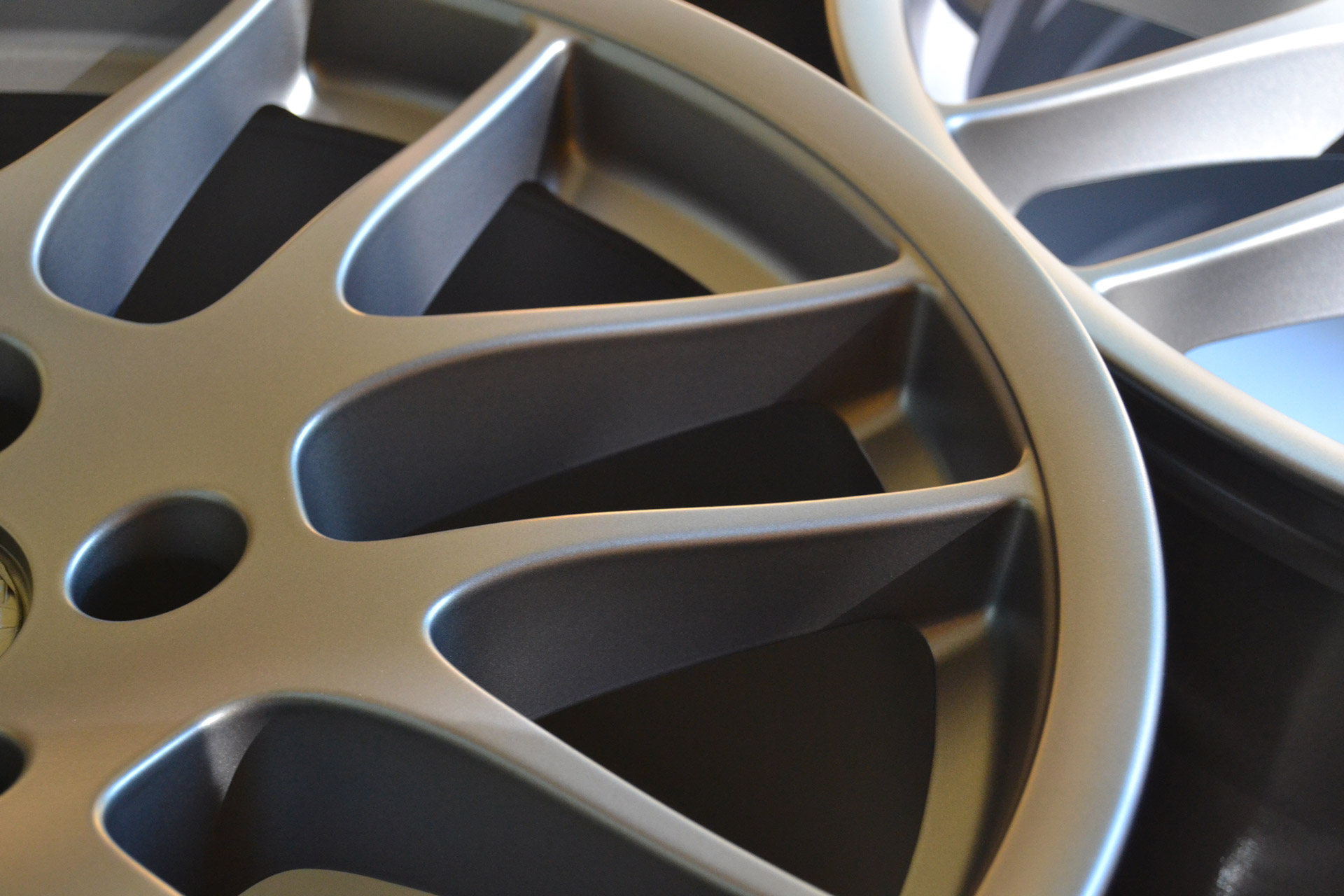Nach dem Pulverbeschichten können die Teile auf Wunsch an bestimmten Stellen poliert werden und zum Schutz der polierten Flächen ergänzend Klar beschichtet werden (z.B. das Felgenbett wie es auf dem Bild unterhalb zu sehen ist).