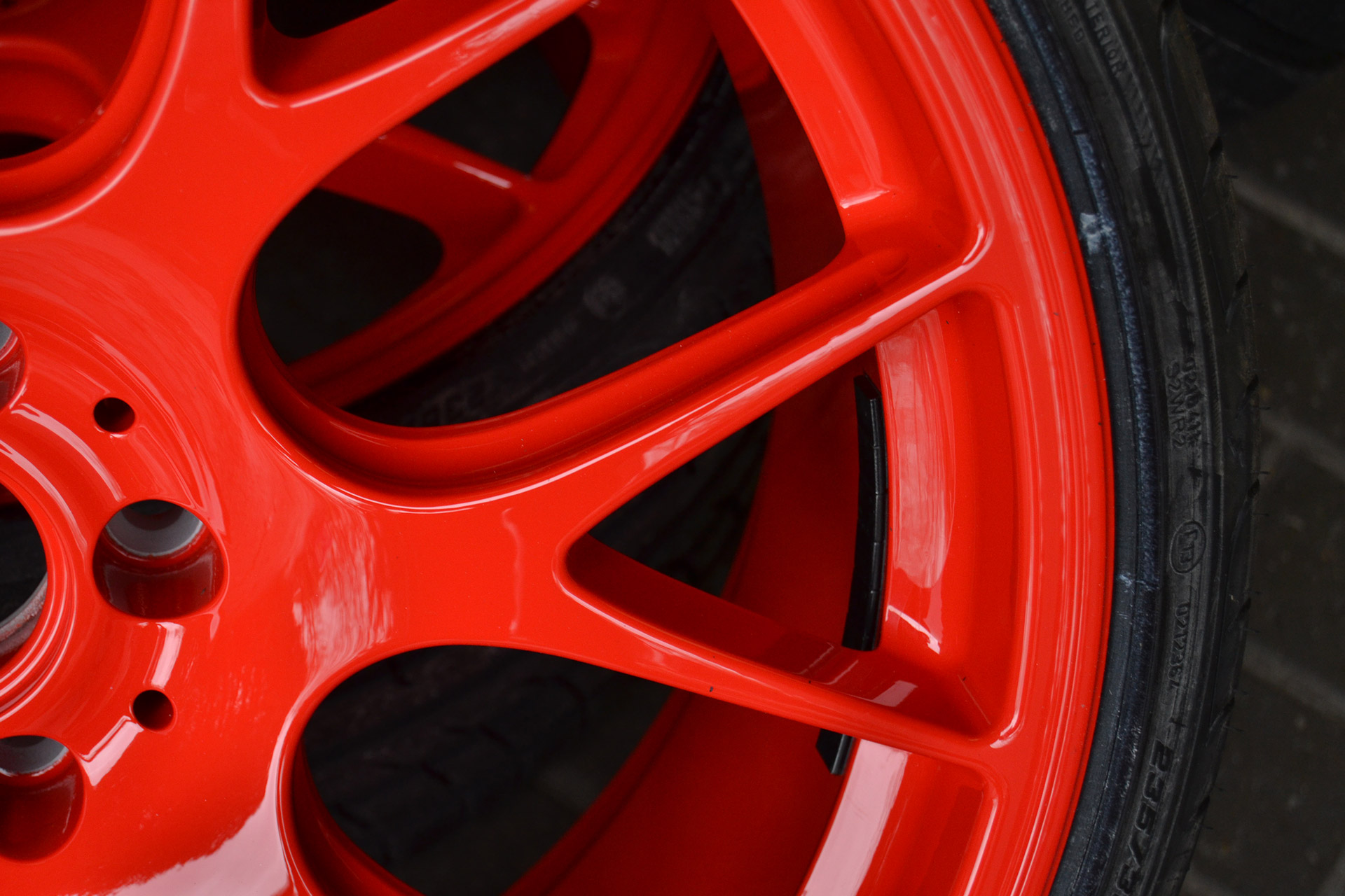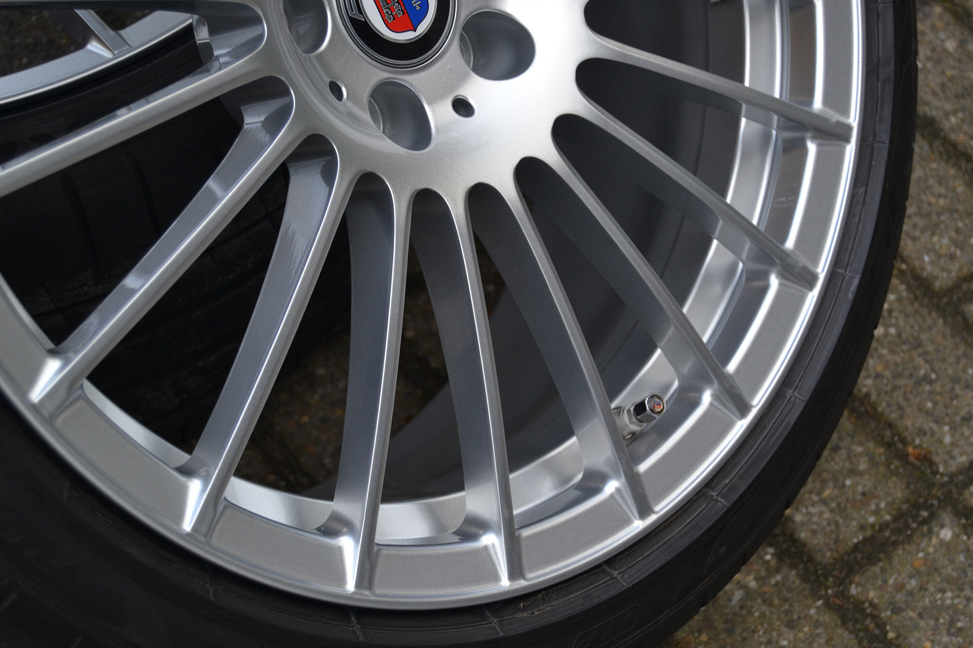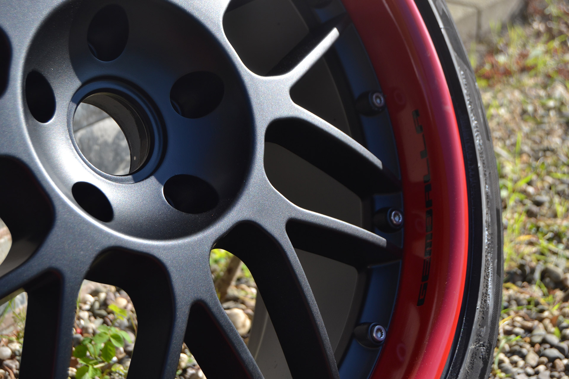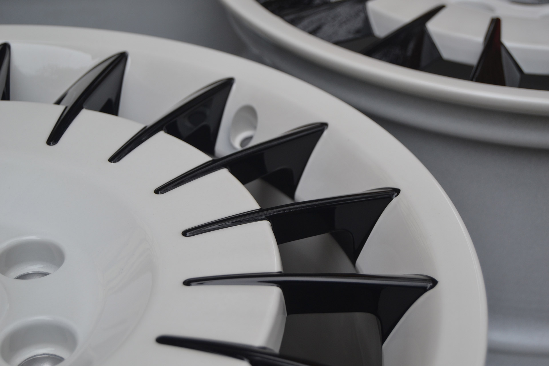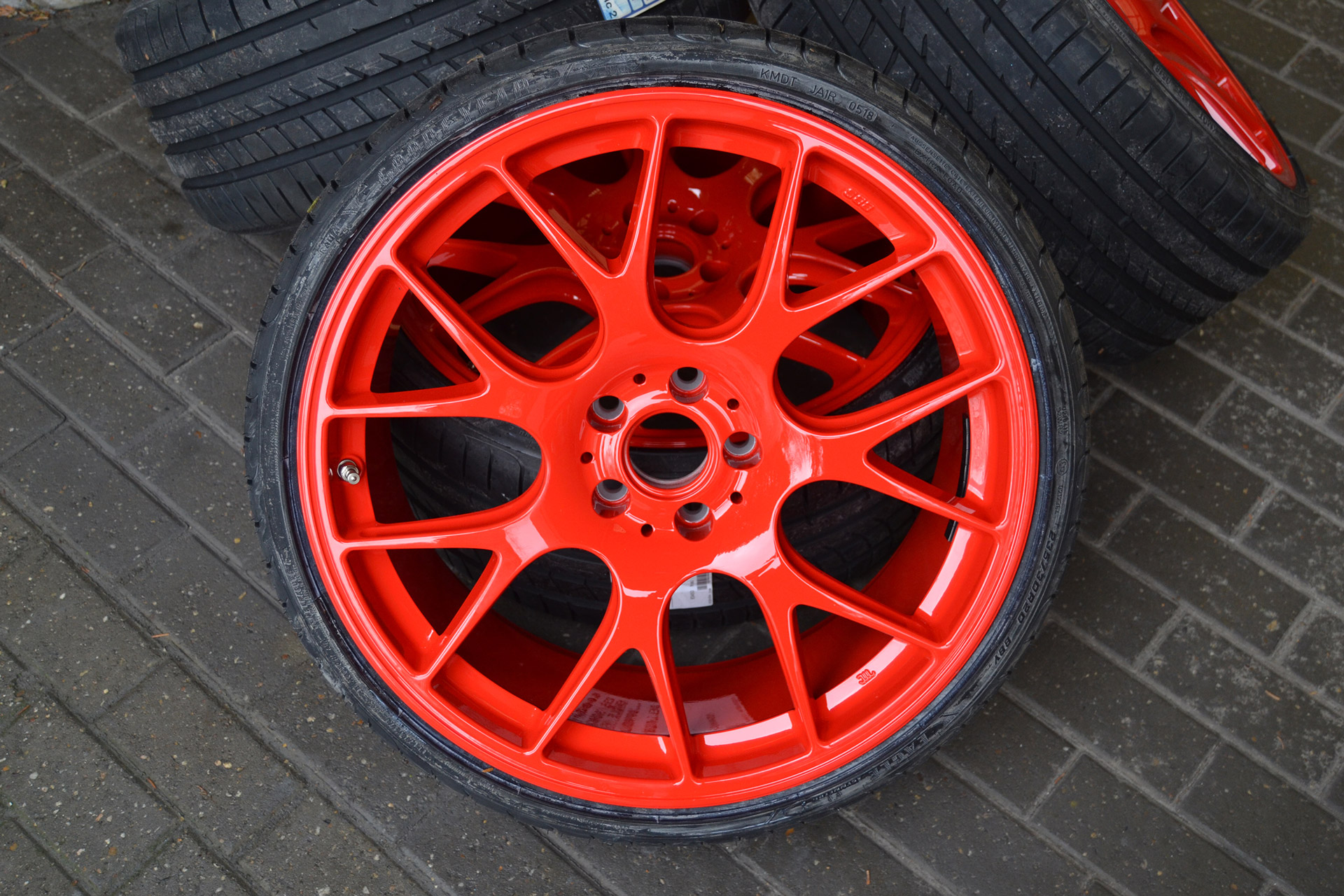 Nach dem Pulverbeschichten können die Teile auf Wunsch an bestimmten Stellen poliert werden und zum Schutz der polierten Flächen ergänzend Klar beschichtet werden (z.B. das Felgenbett wie es auf dem Bild unterhalb zu sehen ist).
