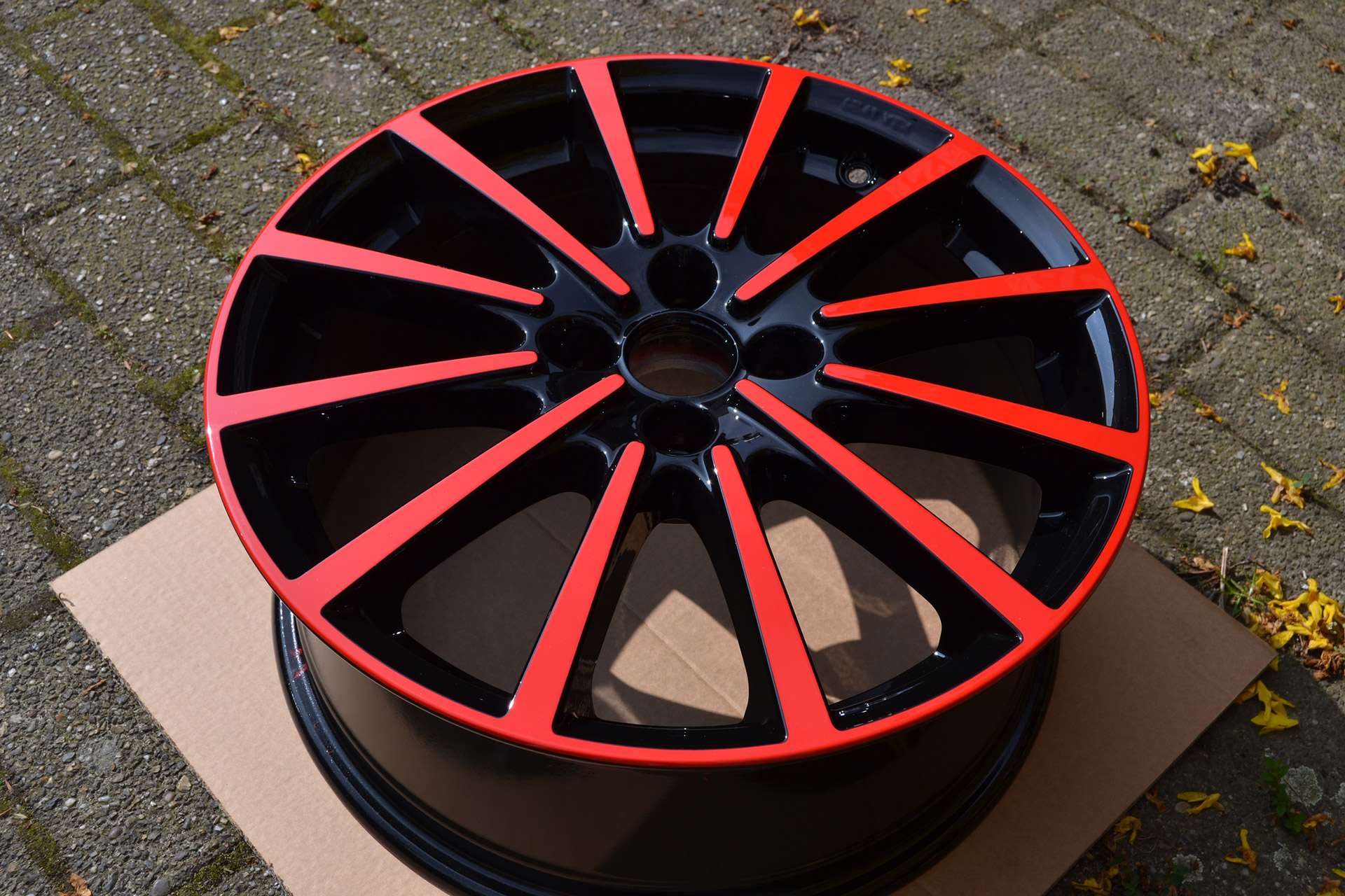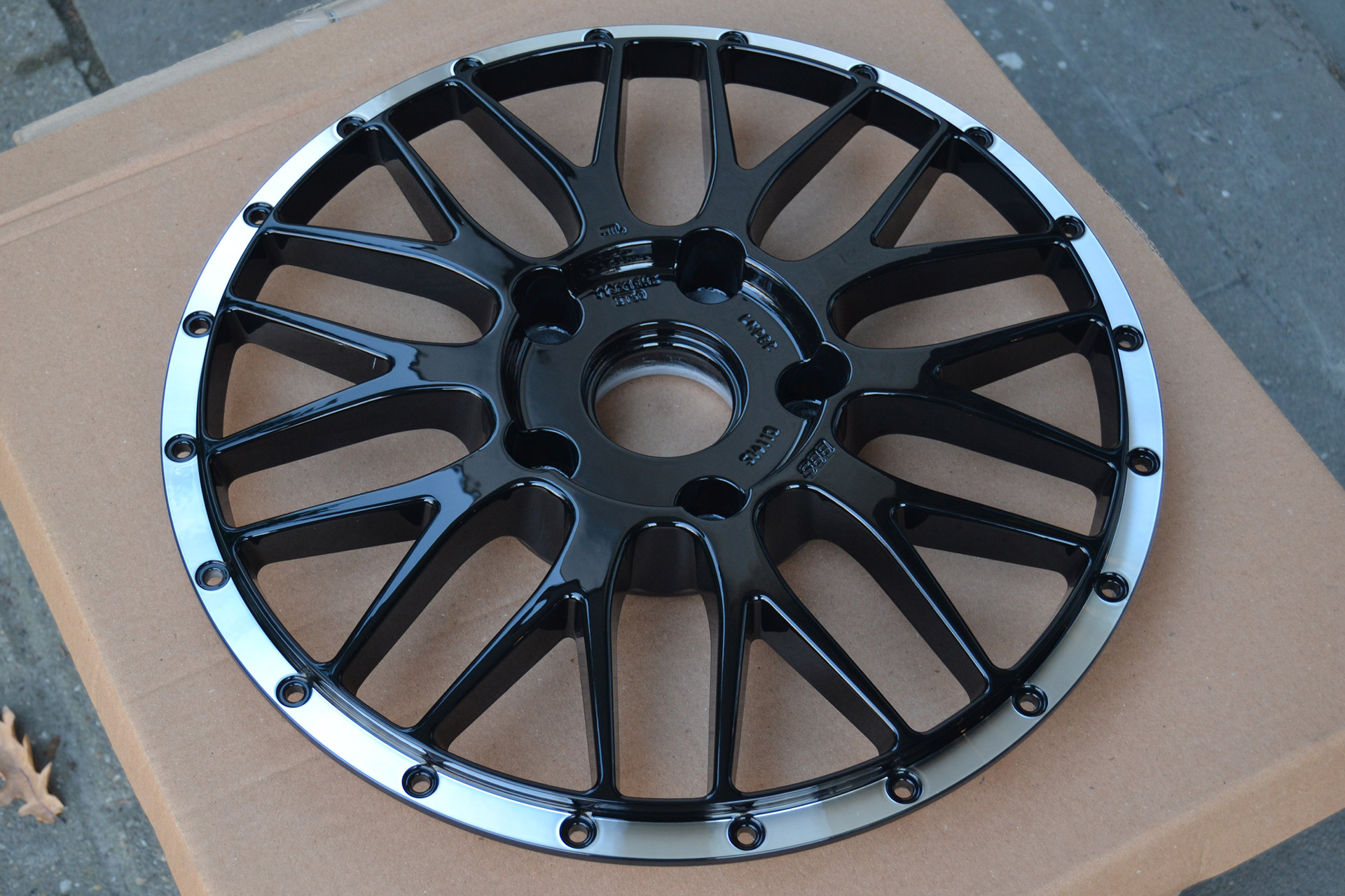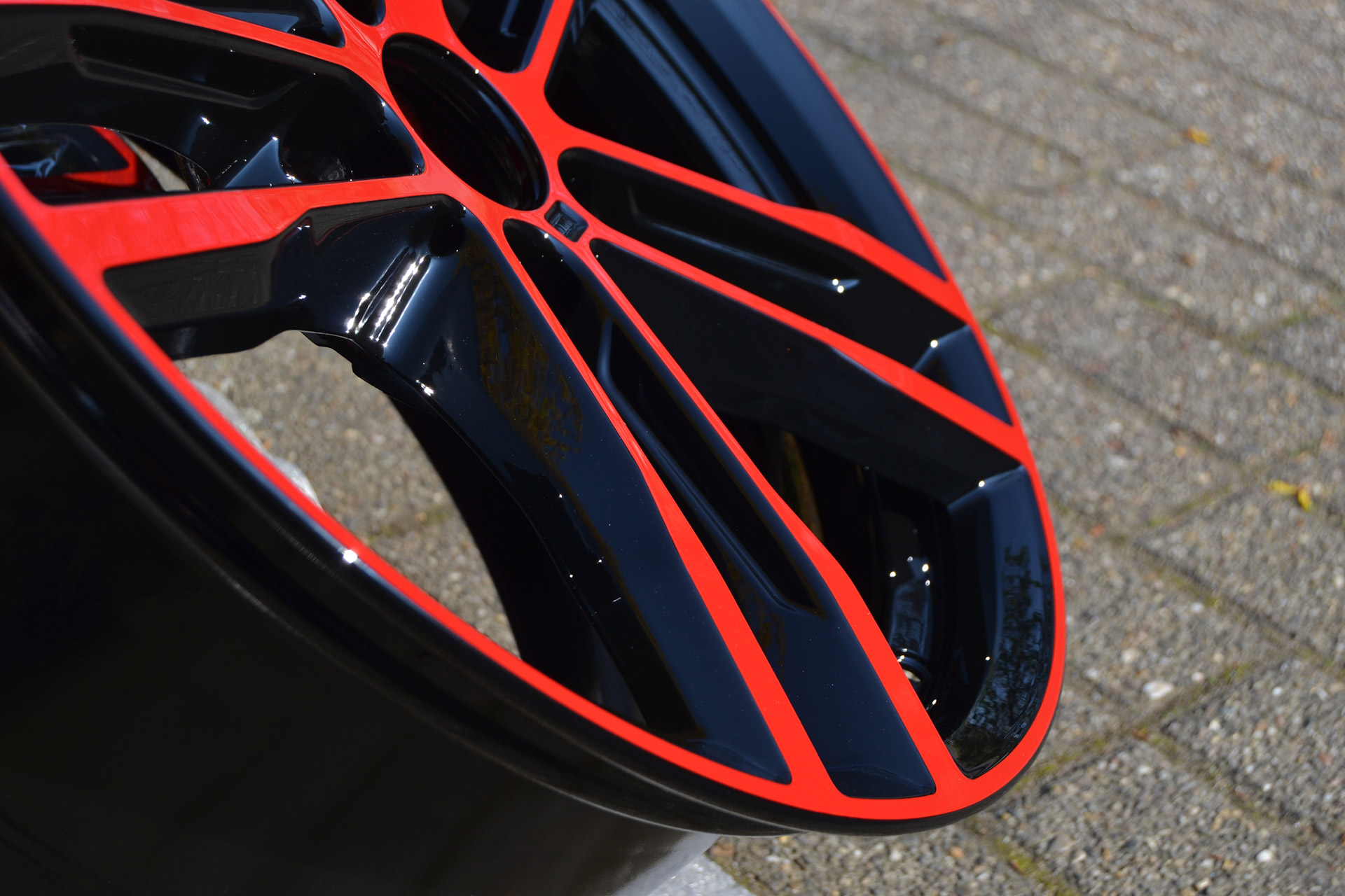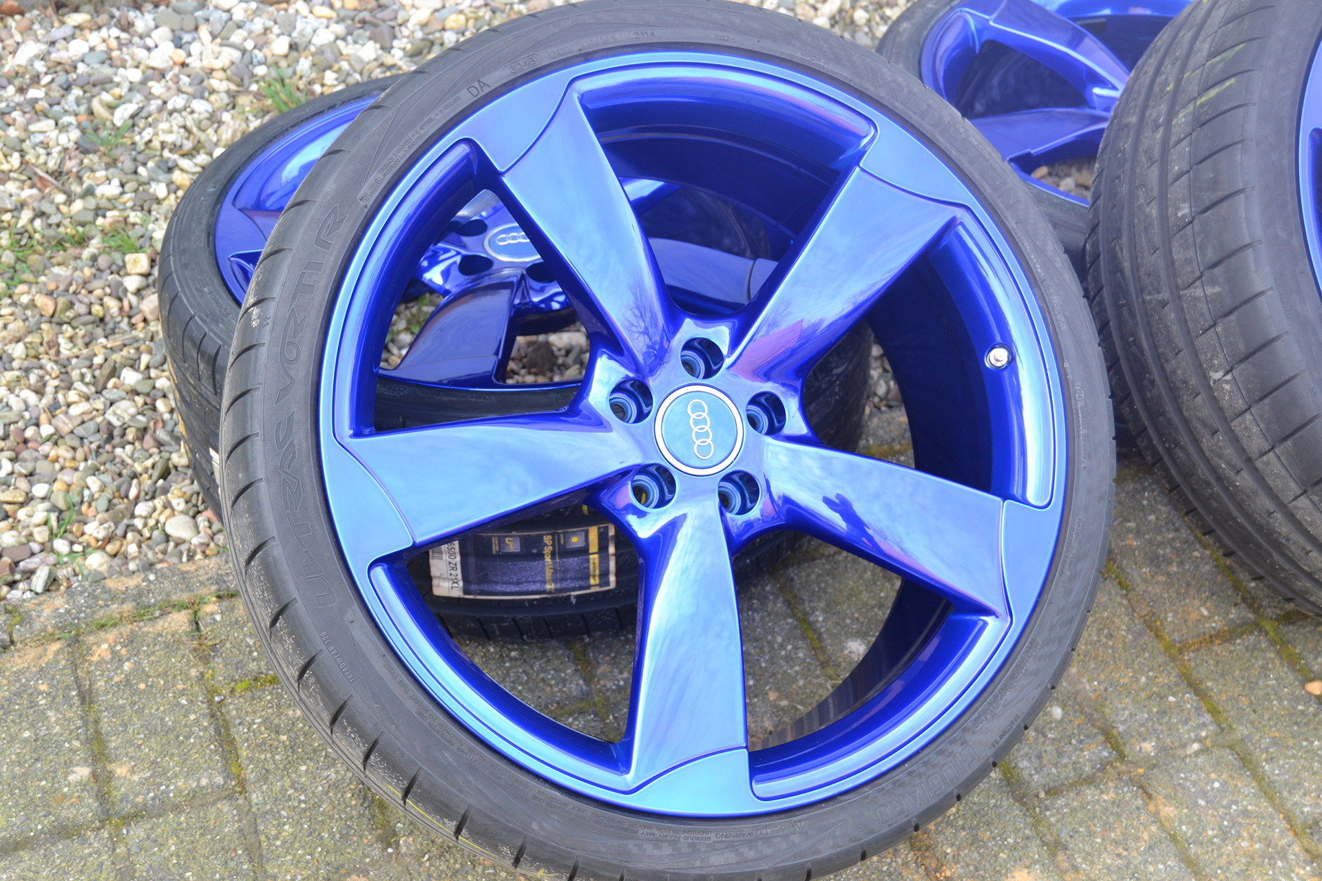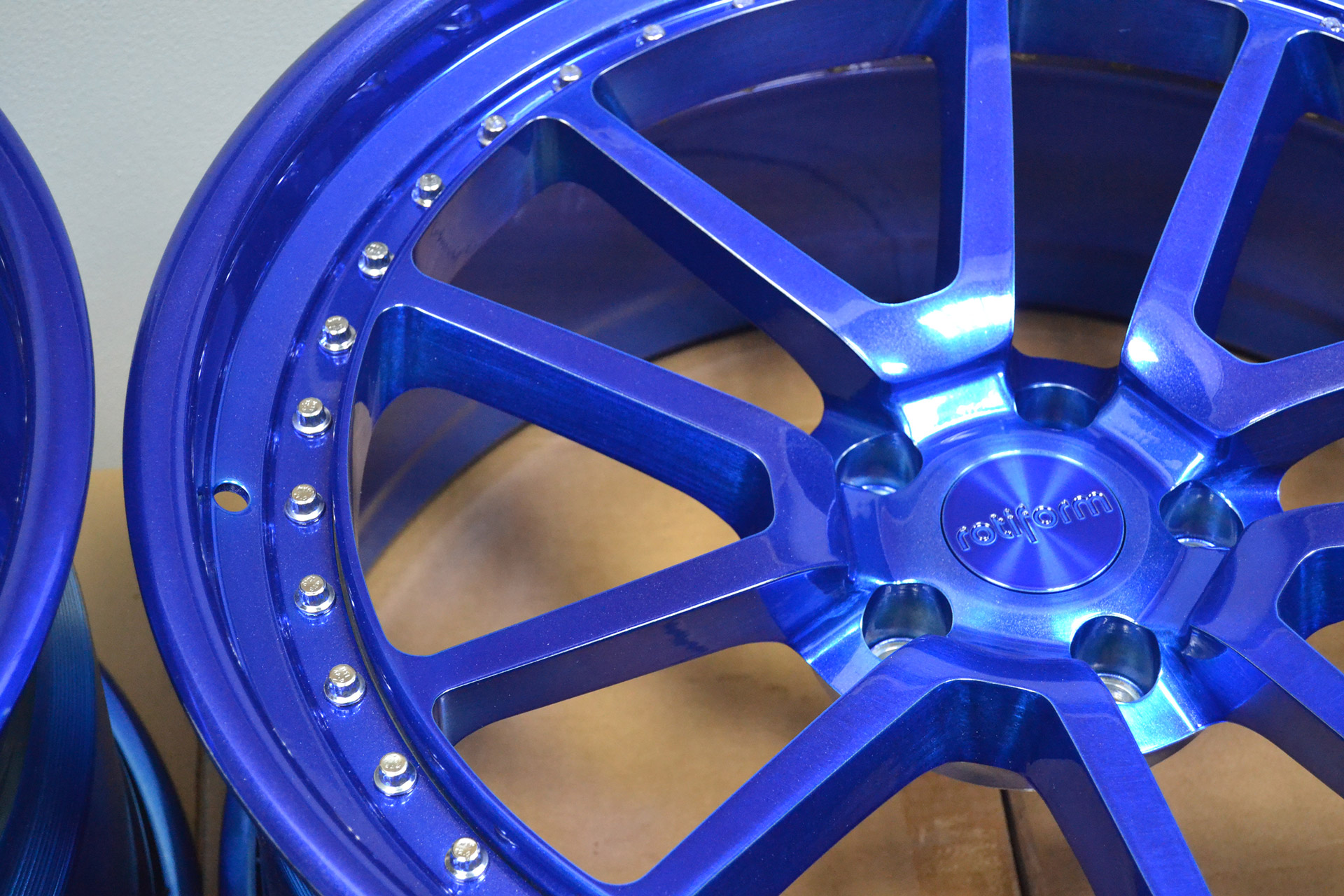 Nach dem Pulverbeschichten können die Teile auf Wunsch an bestimmten Stellen poliert werden und zum Schutz der polierten Flächen ergänzend Klar beschichtet werden (z.B. das Felgenbett wie es auf dem Bild unterhalb zu sehen ist).