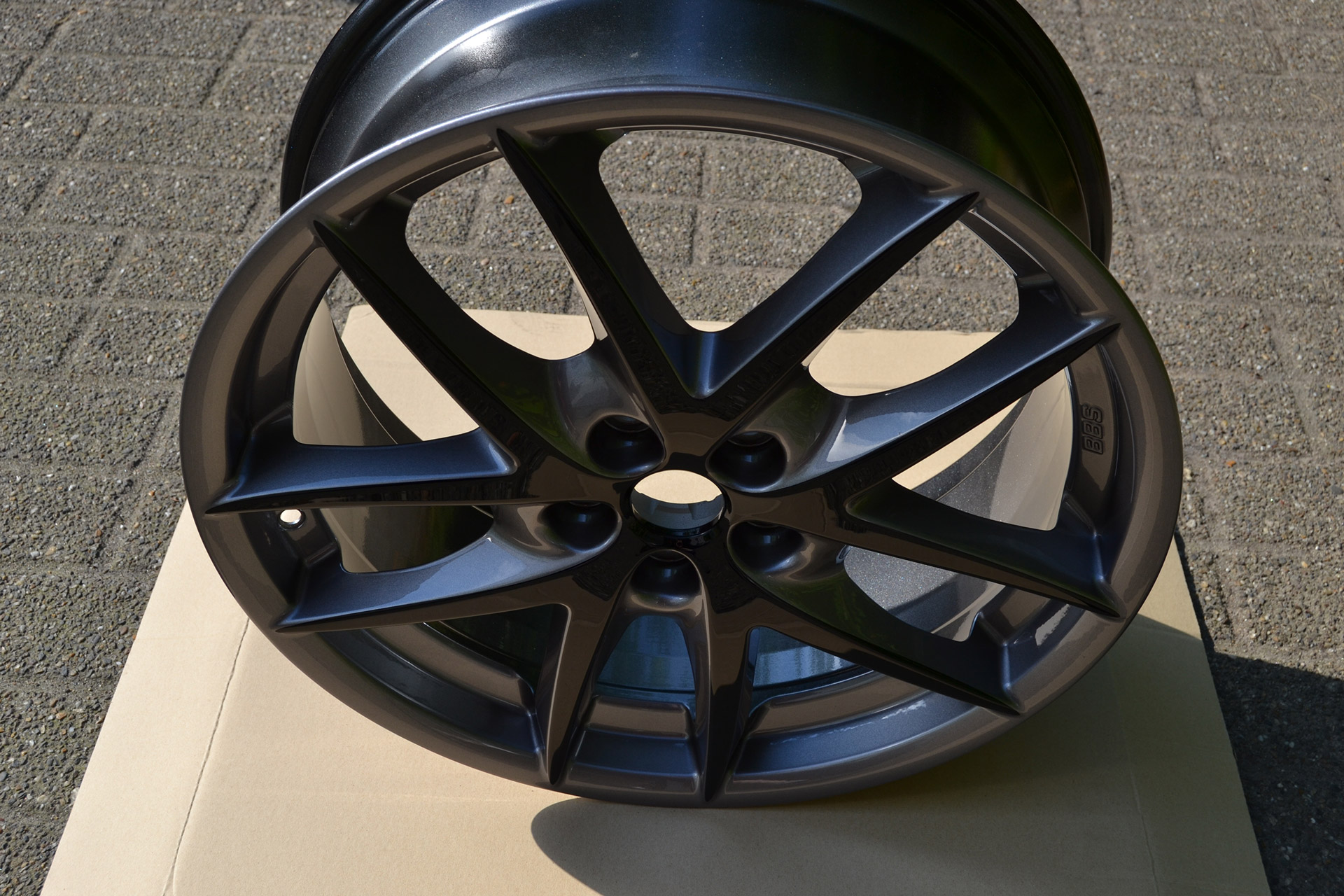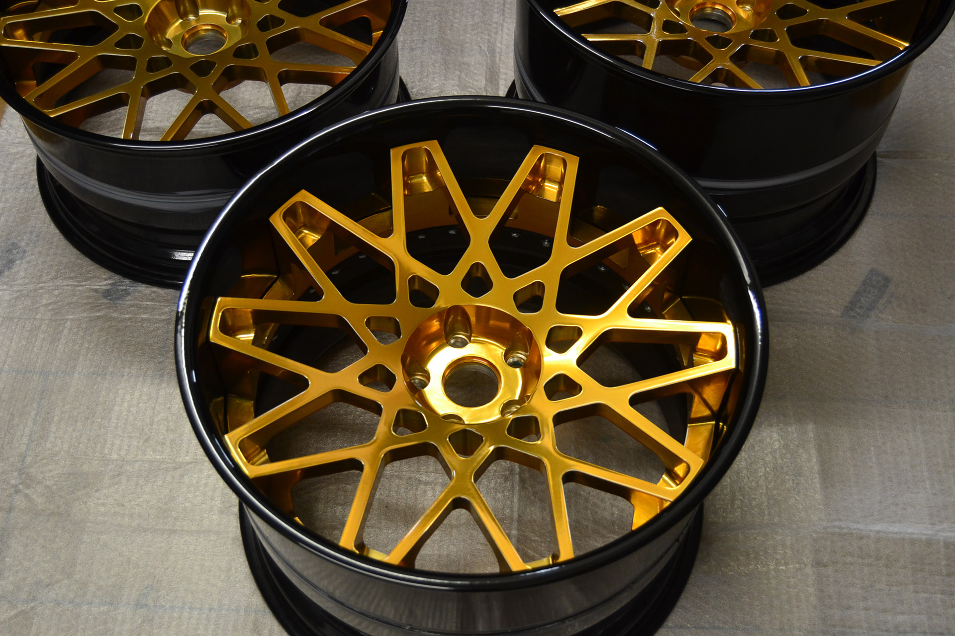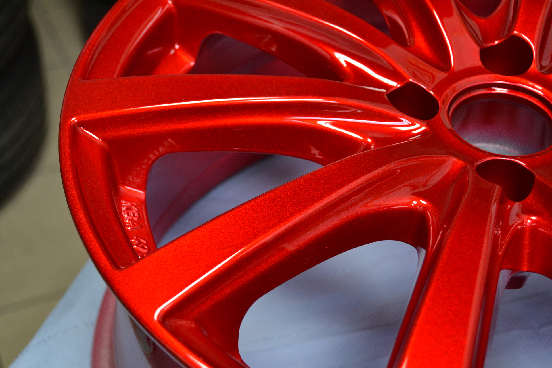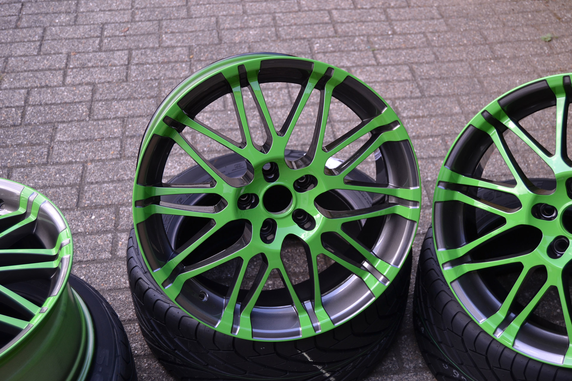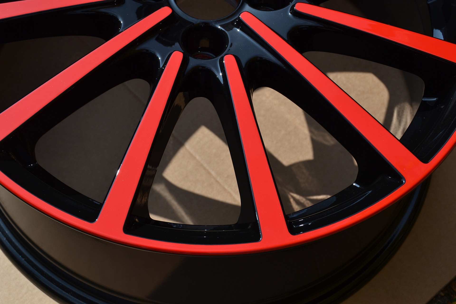Nach dem Pulverbeschichten können die Teile auf Wunsch an bestimmten Stellen poliert werden und zum Schutz der polierten Flächen ergänzend Klar beschichtet werden (z.B. das Felgenbett wie es auf dem Bild unterhalb zu sehen ist).