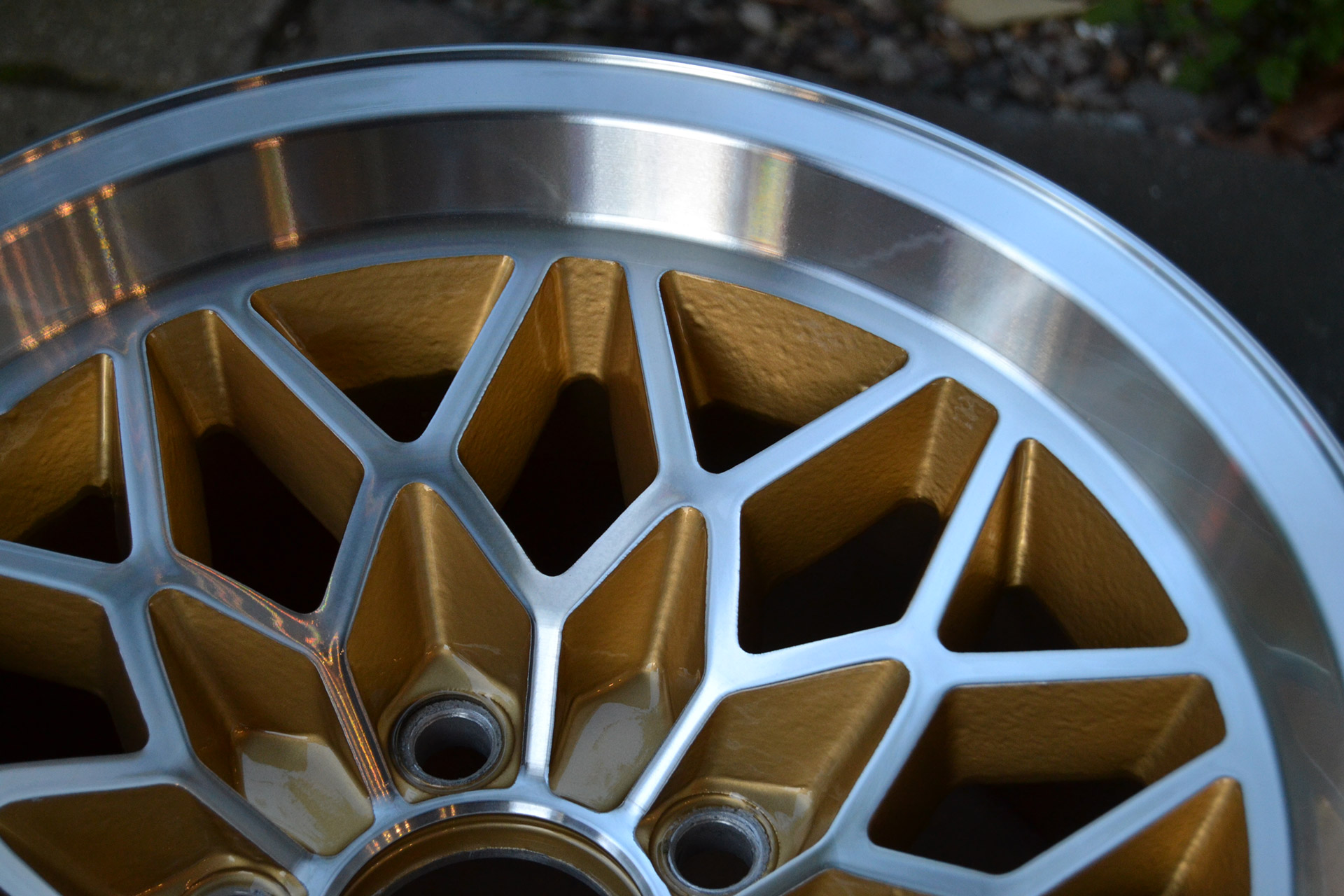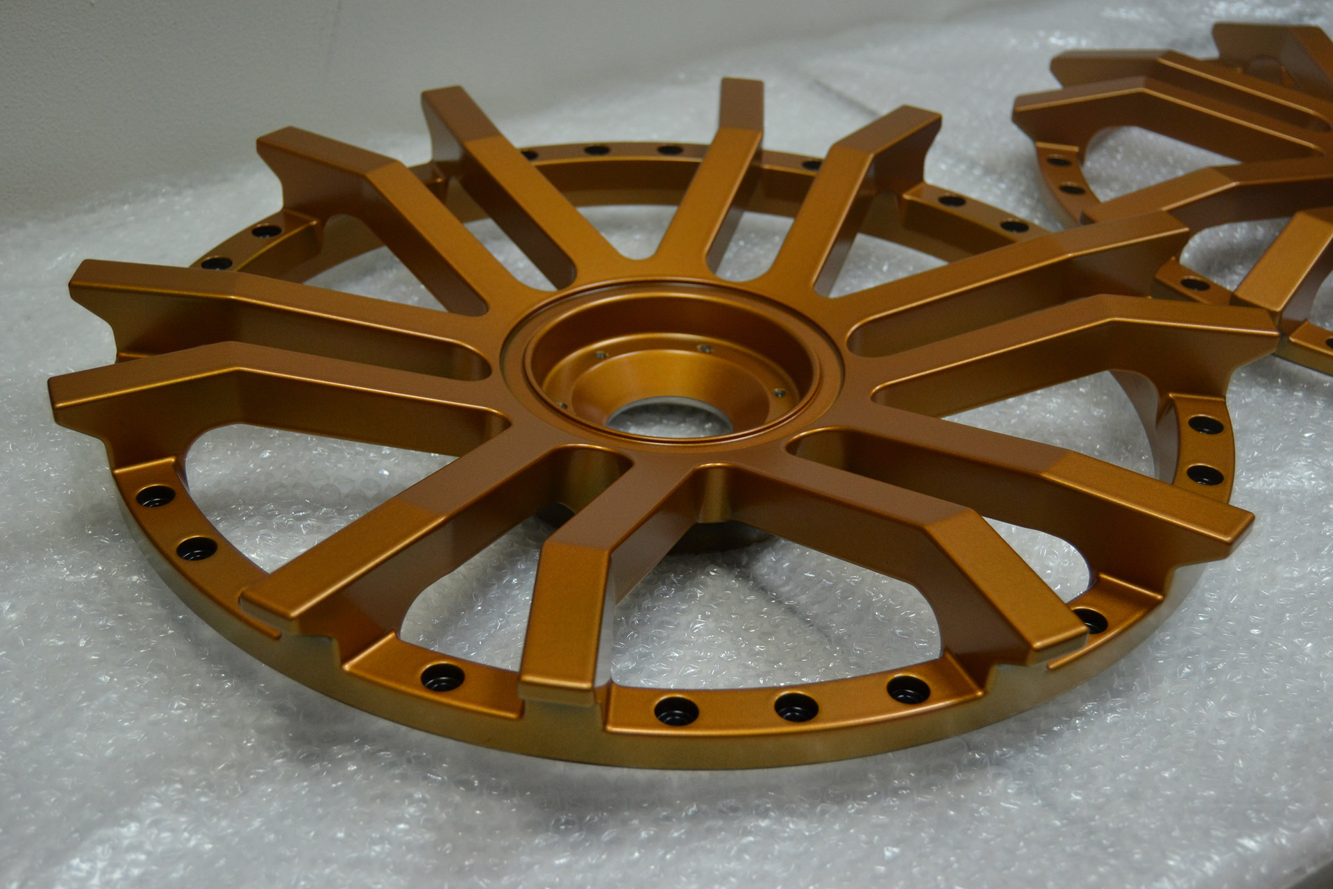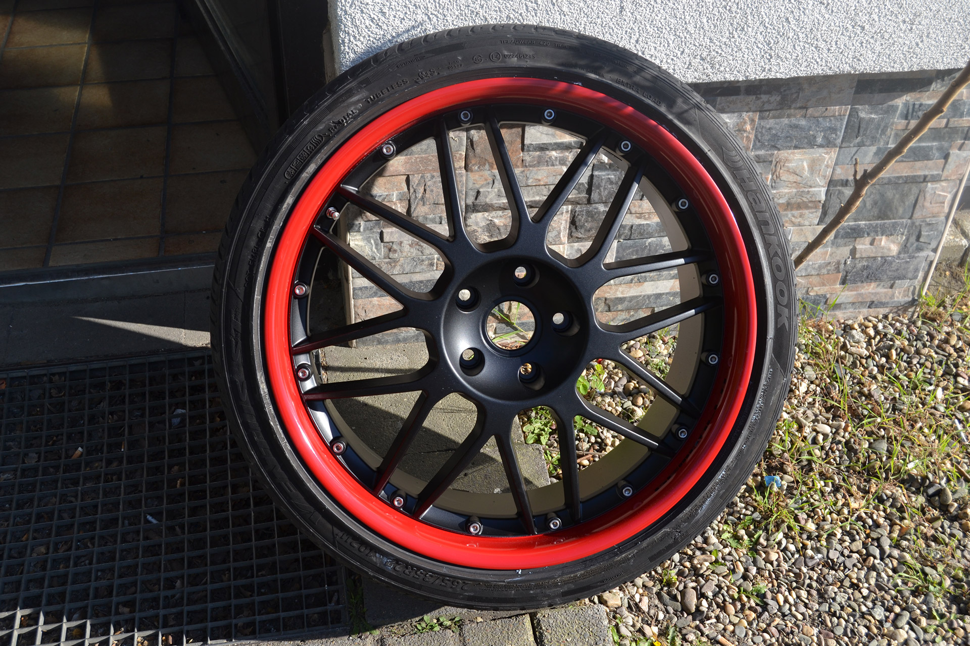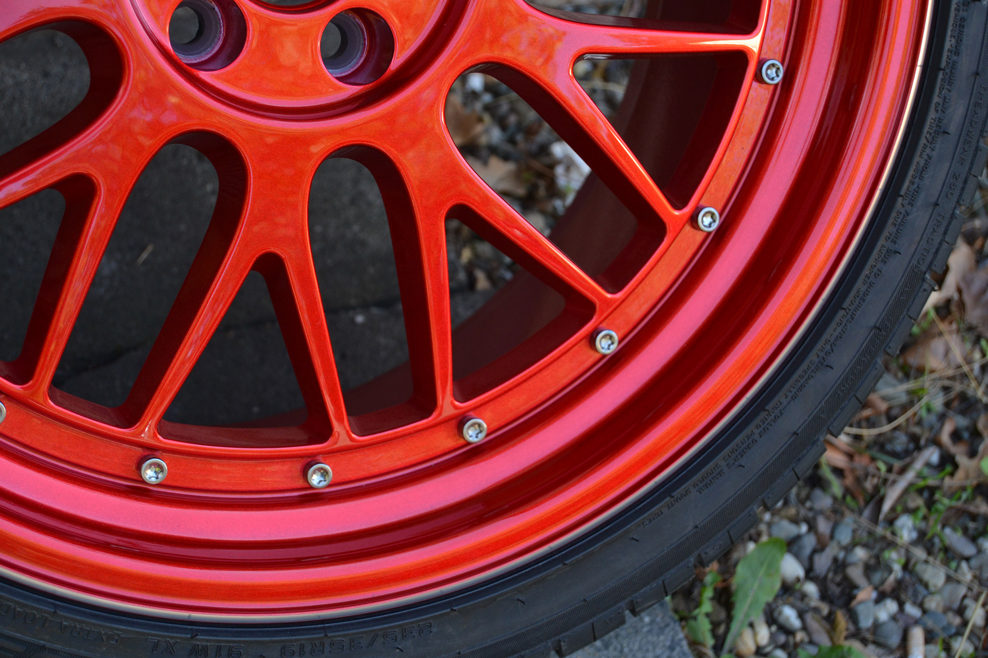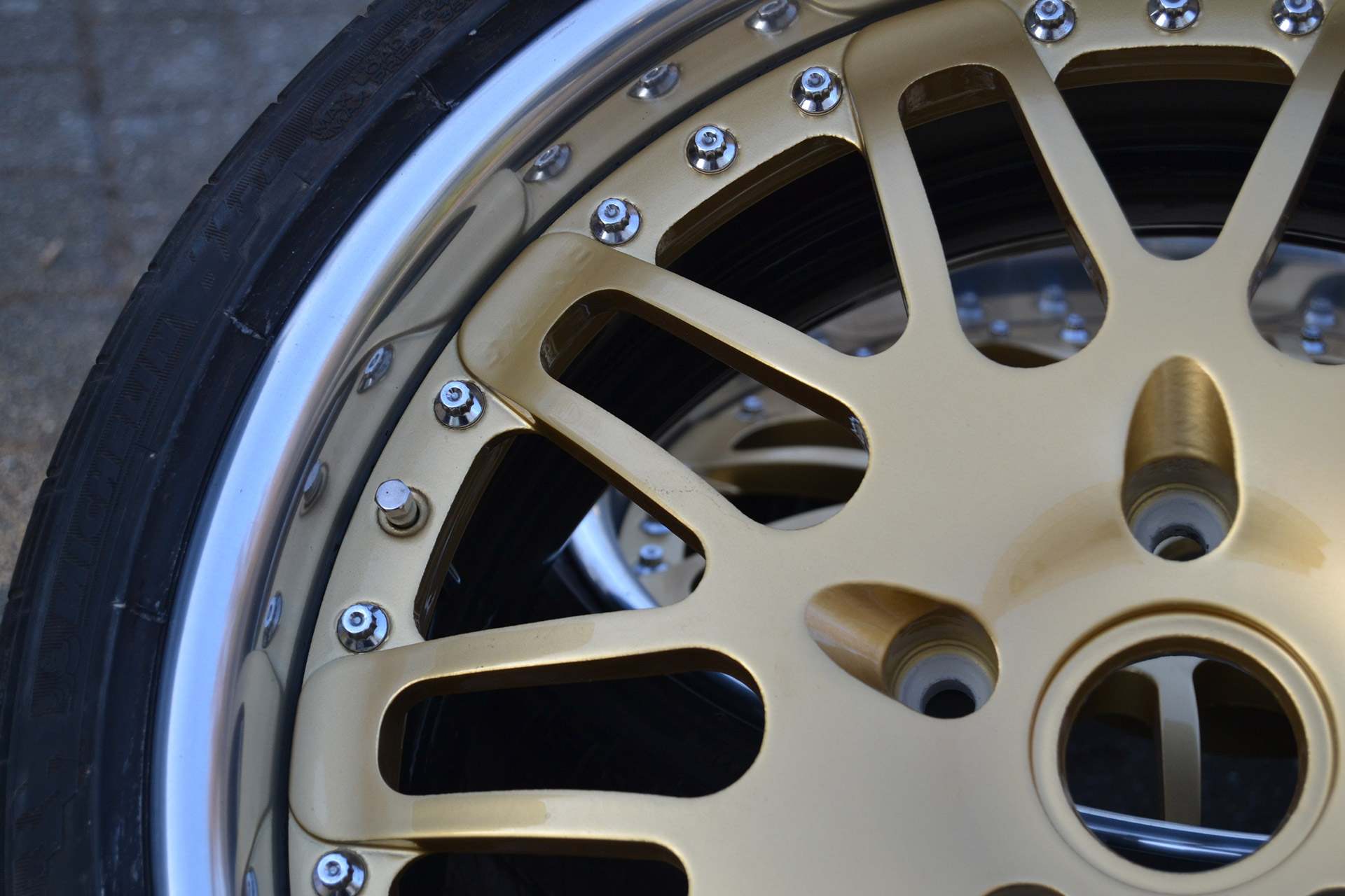 Nach dem Pulverbeschichten können die Teile auf Wunsch an bestimmten Stellen poliert werden und zum Schutz der polierten Flächen ergänzend Klar beschichtet werden (z.B. das Felgenbett wie es auf dem Bild unterhalb zu sehen ist).