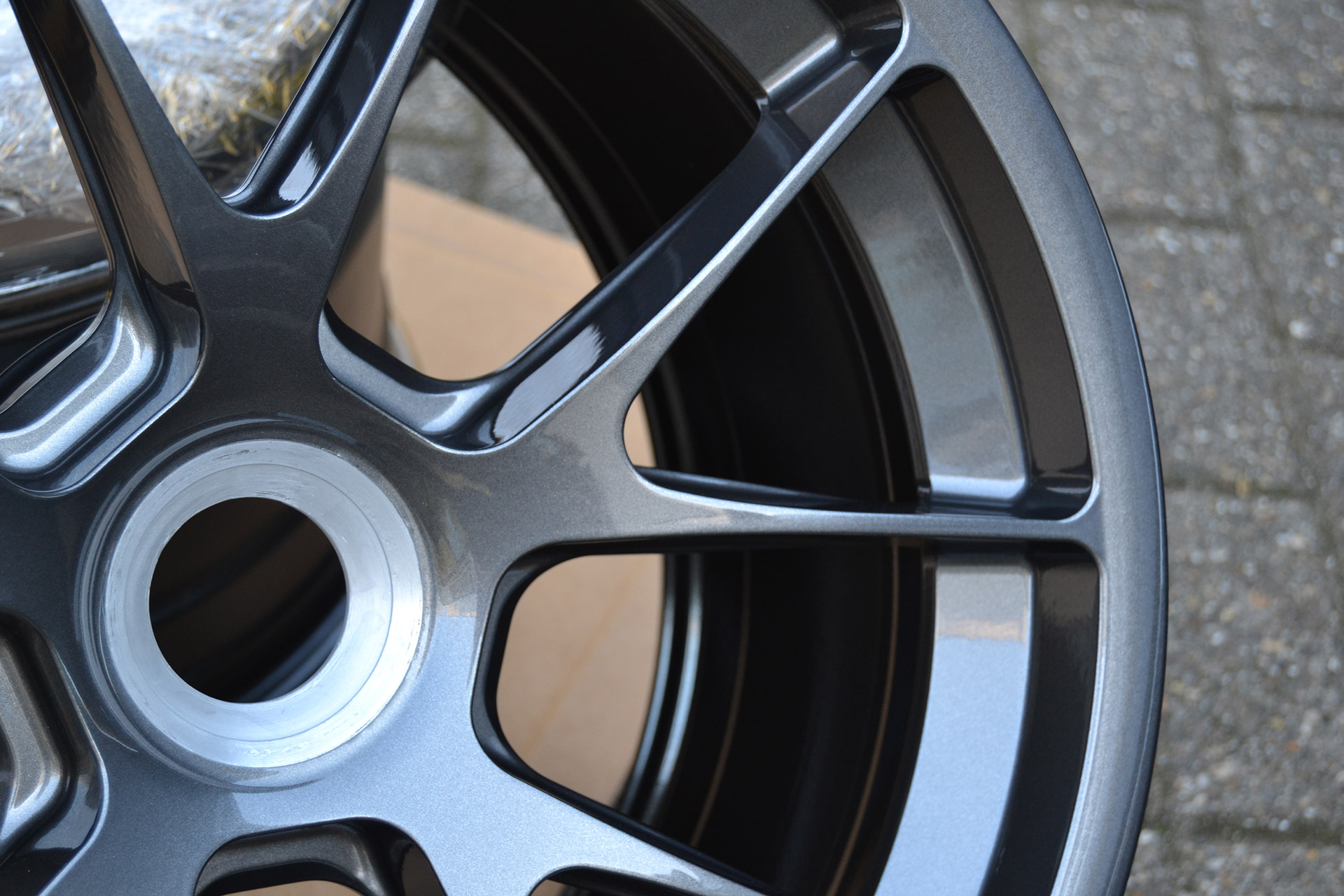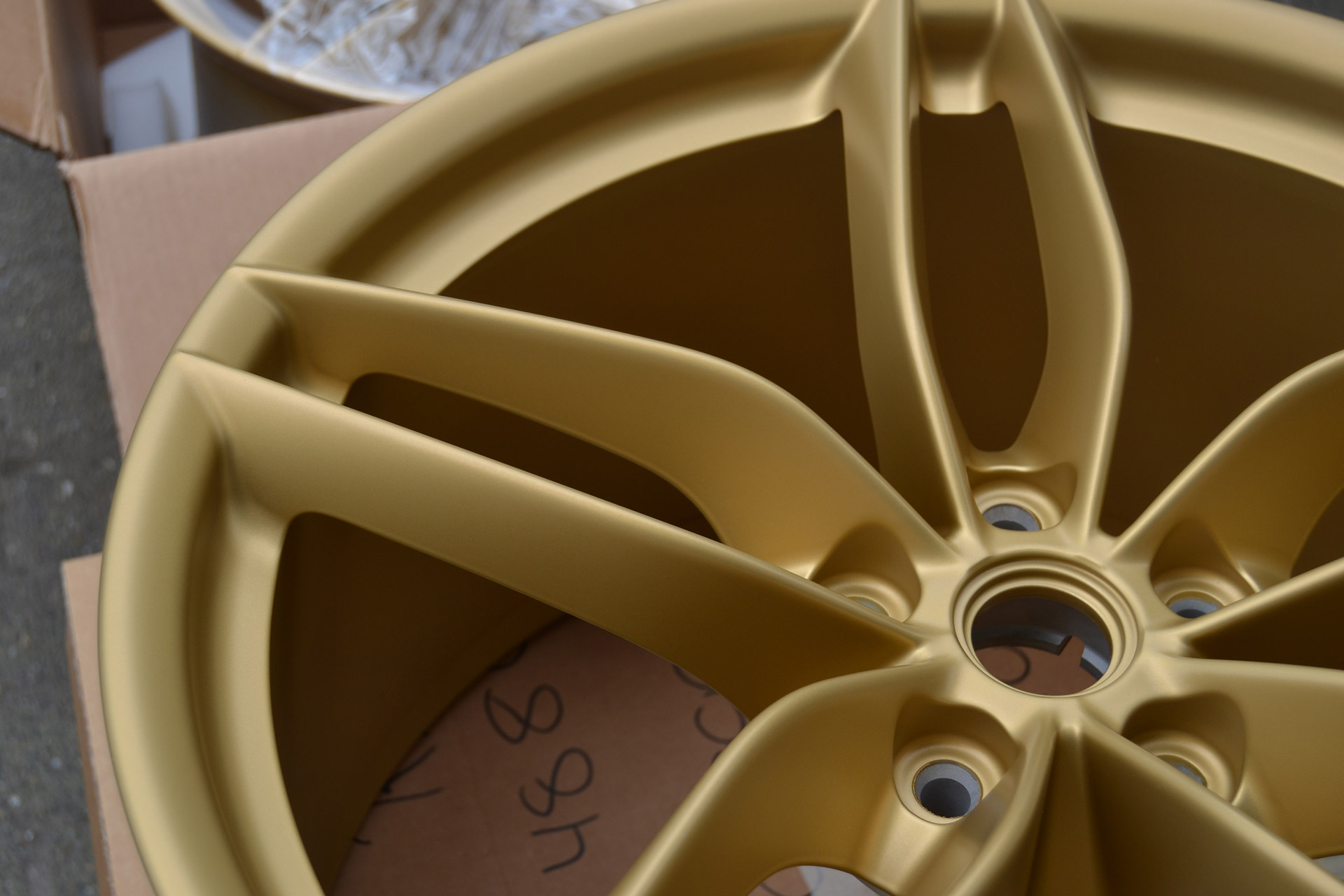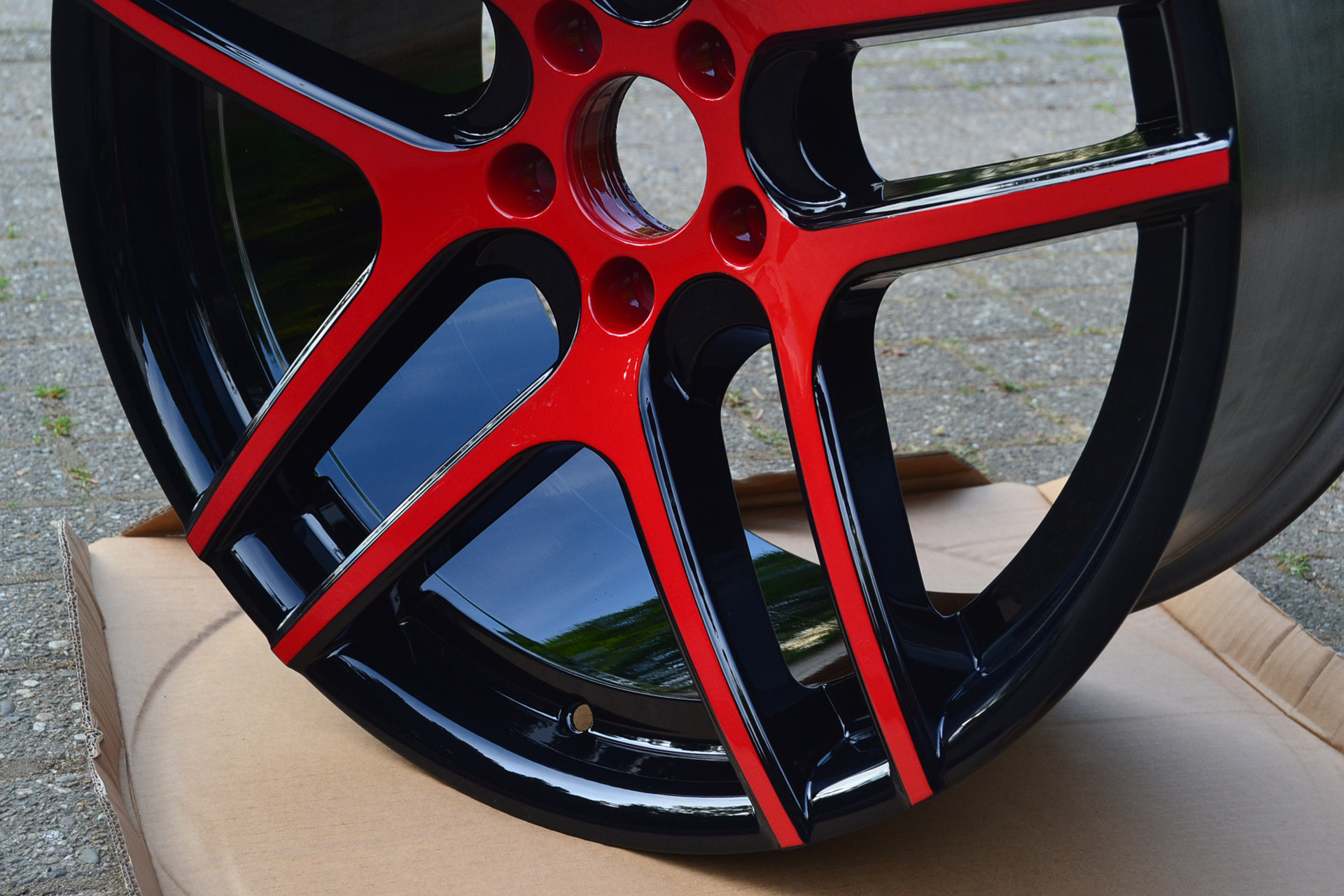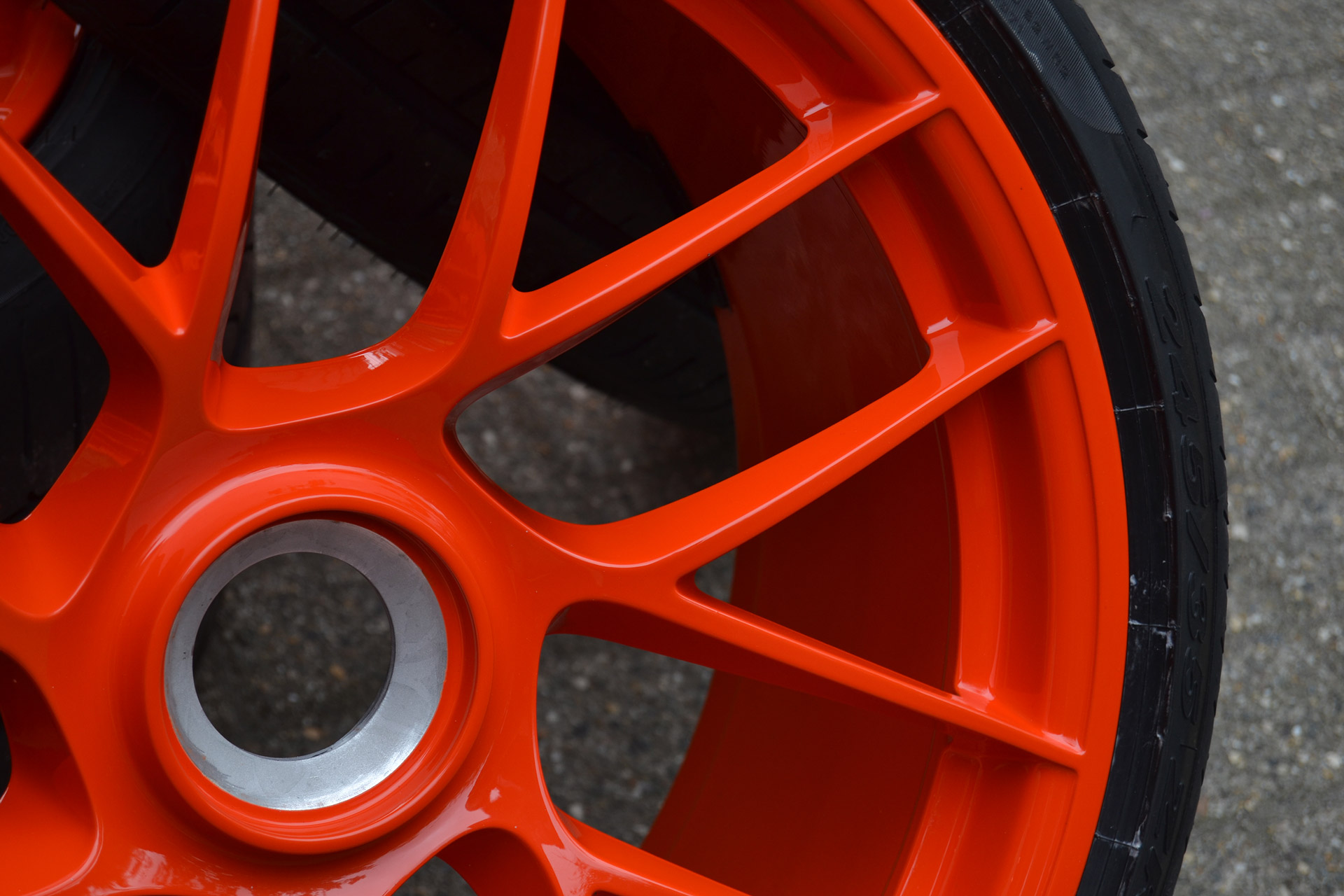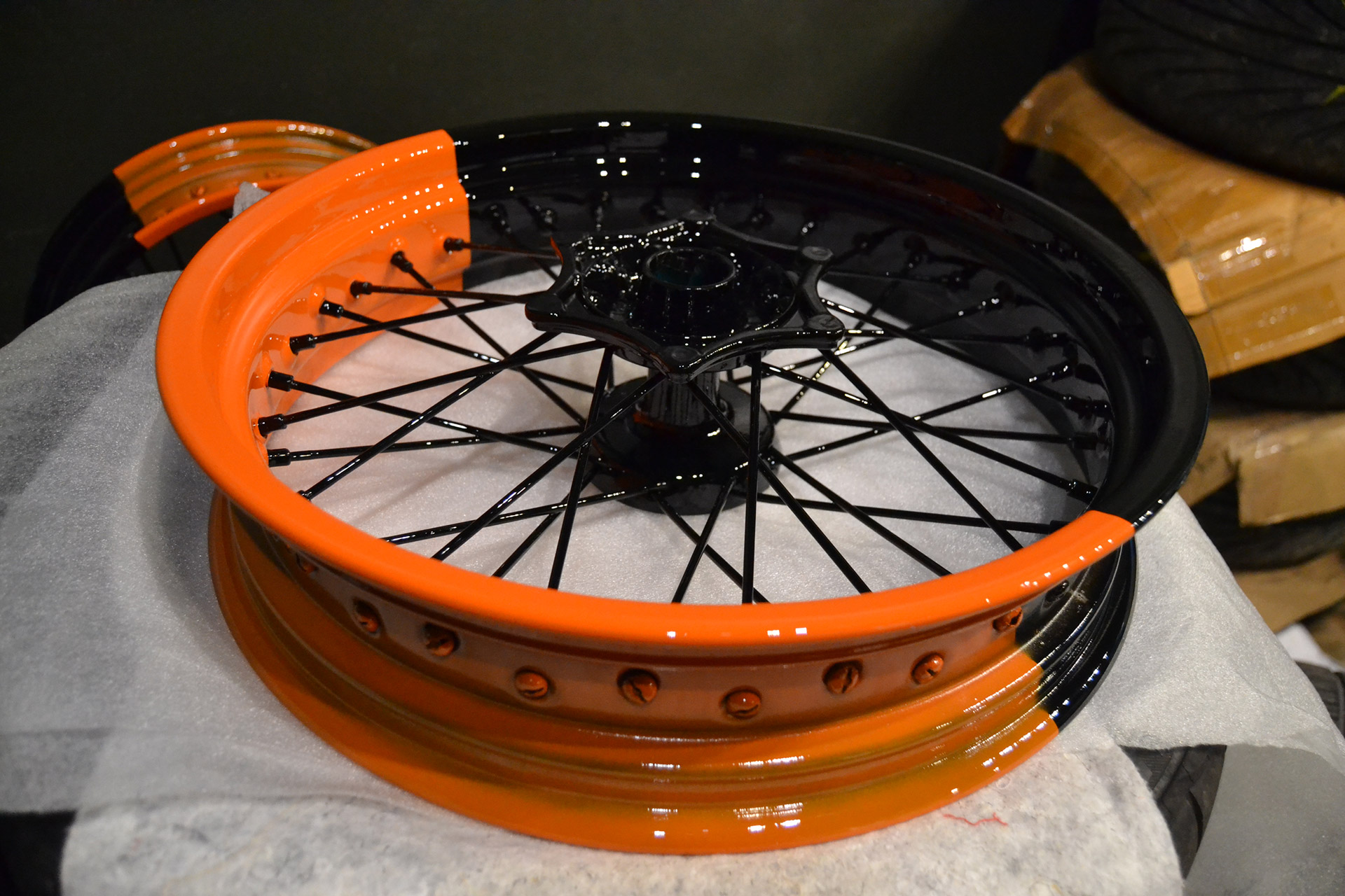 Nach dem Pulverbeschichten können die Teile auf Wunsch an bestimmten Stellen poliert werden und zum Schutz der polierten Flächen ergänzend Klar beschichtet werden (z.B. das Felgenbett wie es auf dem Bild unterhalb zu sehen ist).