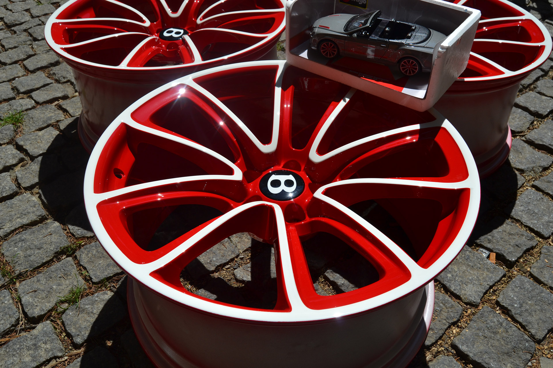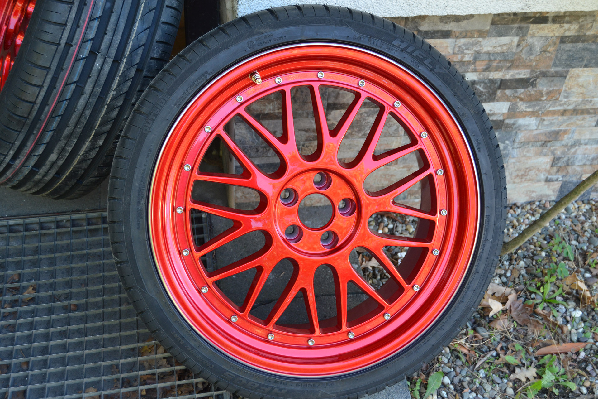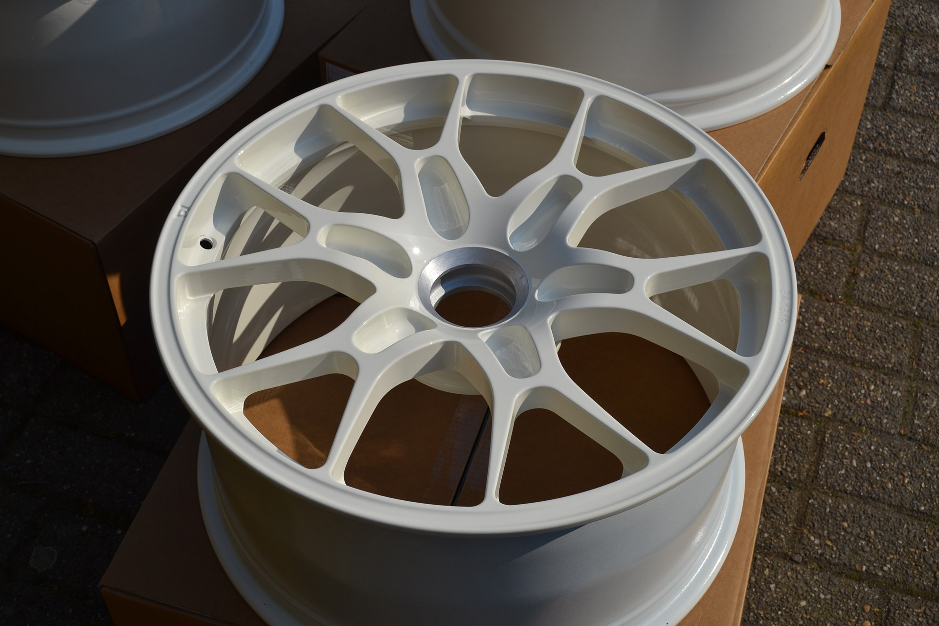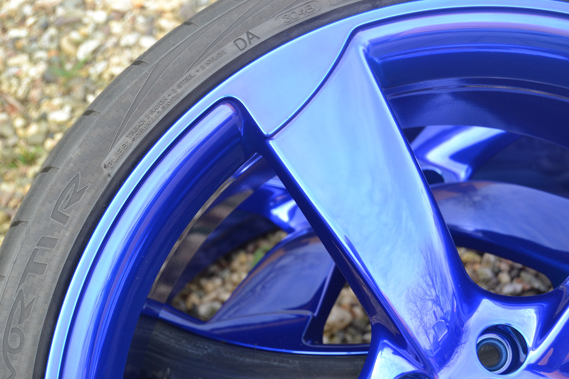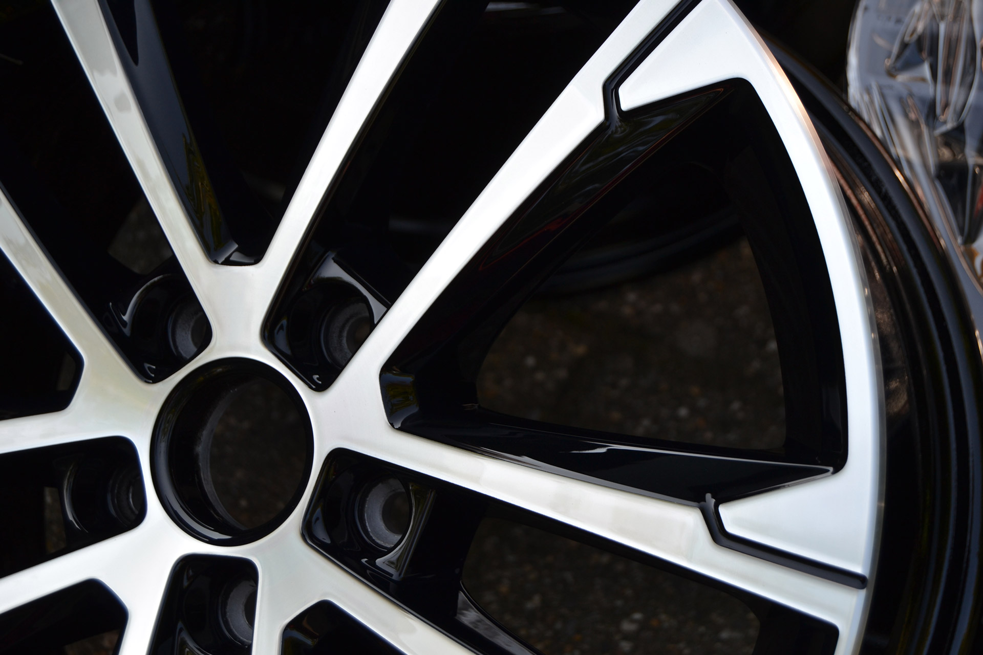 Nach dem Pulverbeschichten können die Teile auf Wunsch an bestimmten Stellen poliert werden und zum Schutz der polierten Flächen ergänzend Klar beschichtet werden (z.B. das Felgenbett wie es auf dem Bild unterhalb zu sehen ist).