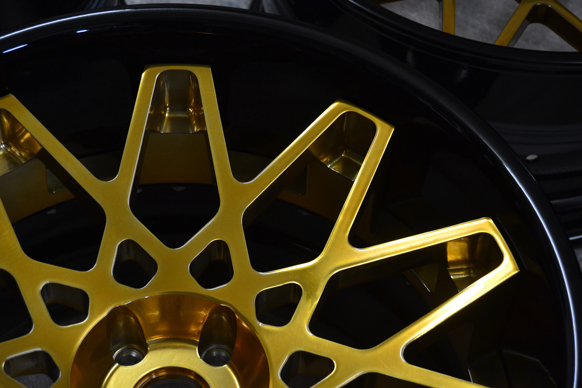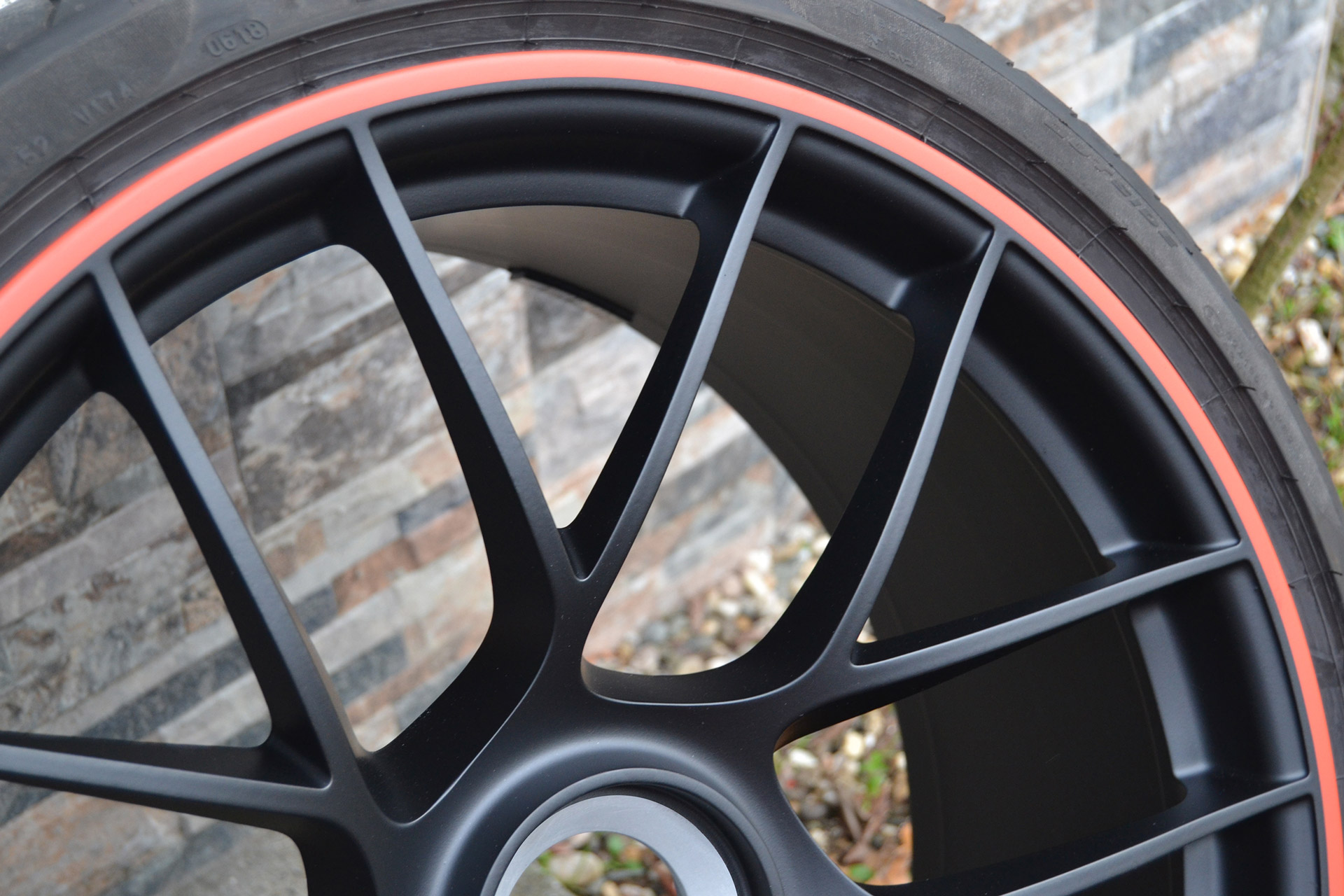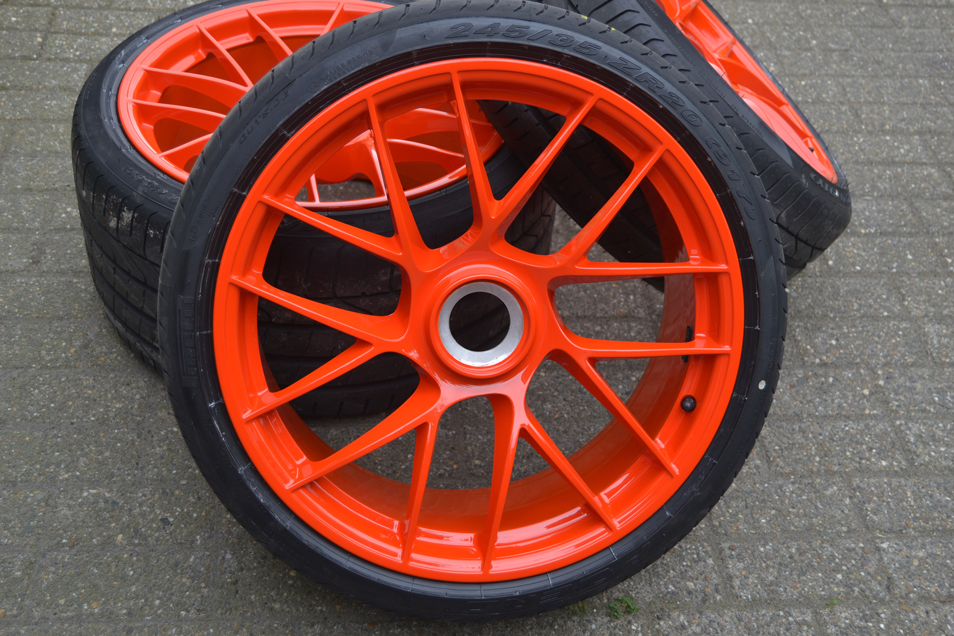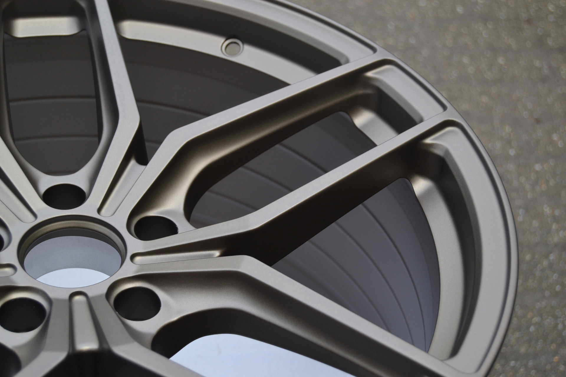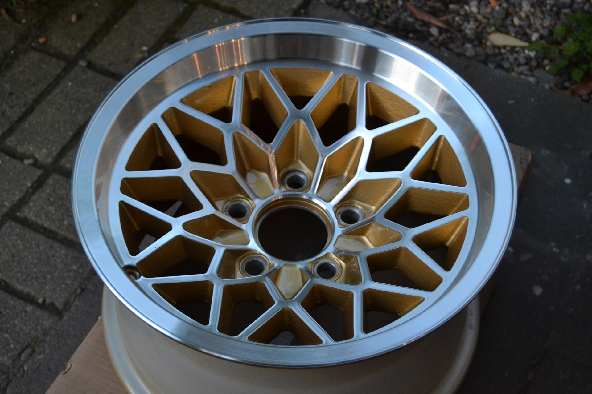 Nach dem Pulverbeschichten können die Teile auf Wunsch an bestimmten Stellen poliert werden und zum Schutz der polierten Flächen ergänzend Klar beschichtet werden (z.B. das Felgenbett wie es auf dem Bild unterhalb zu sehen ist).