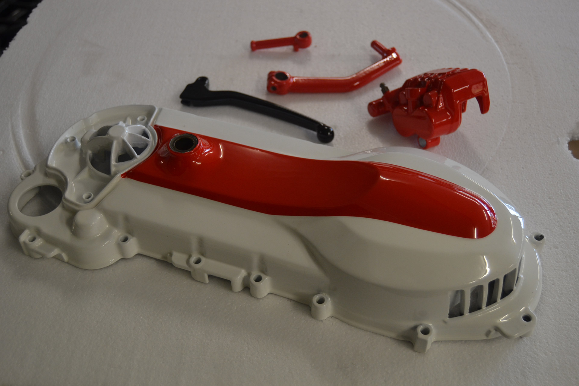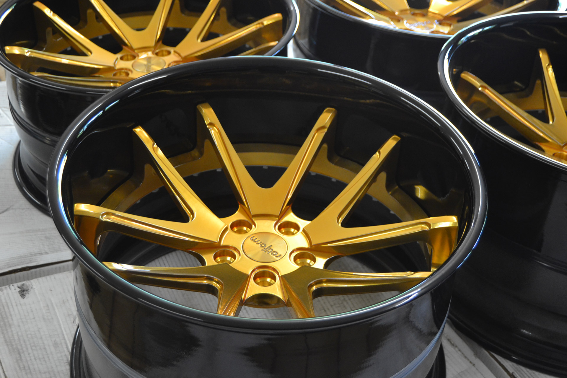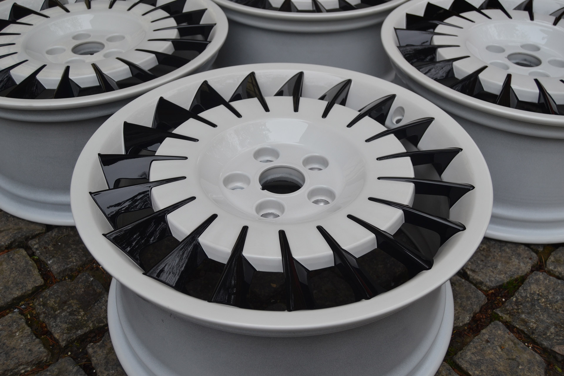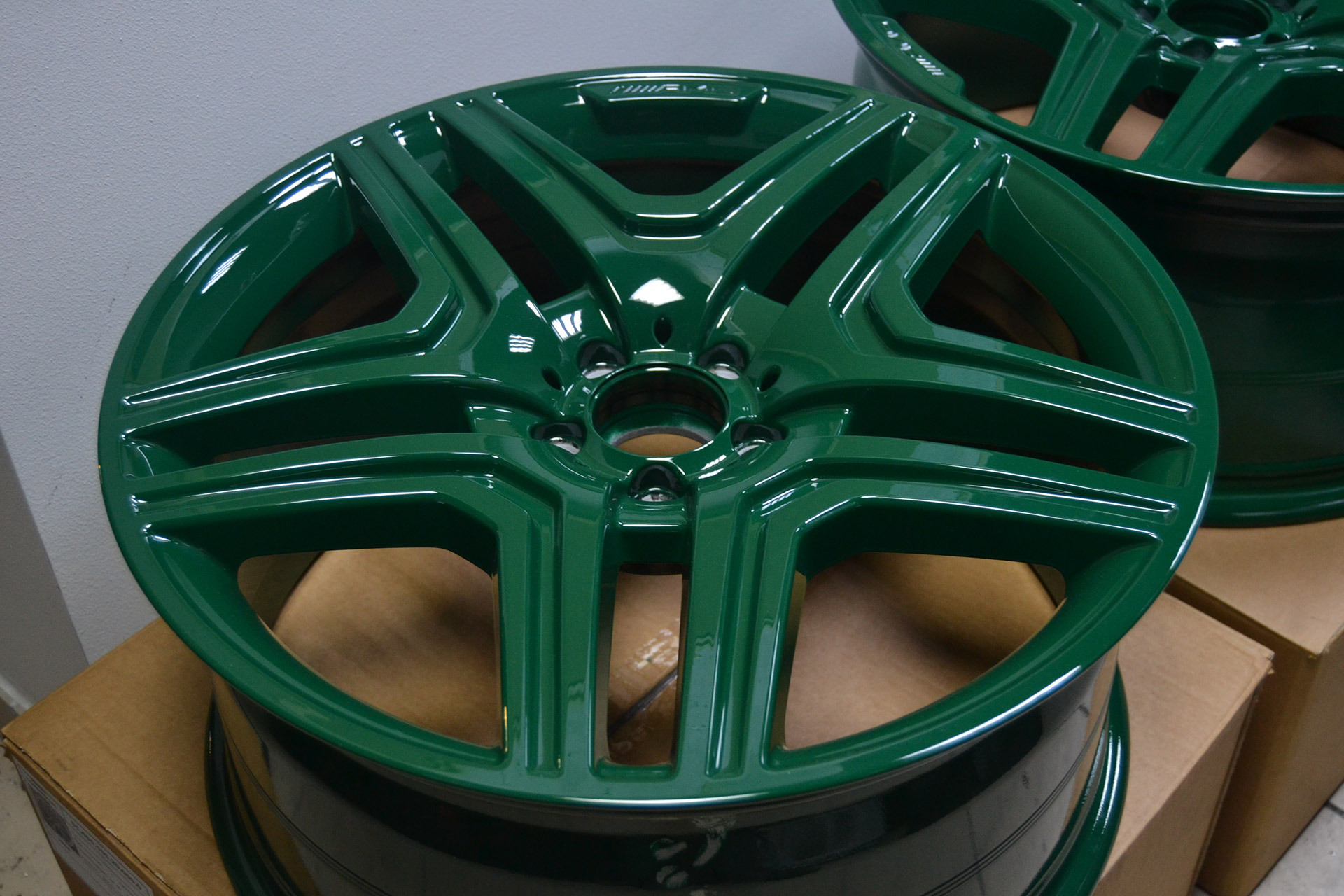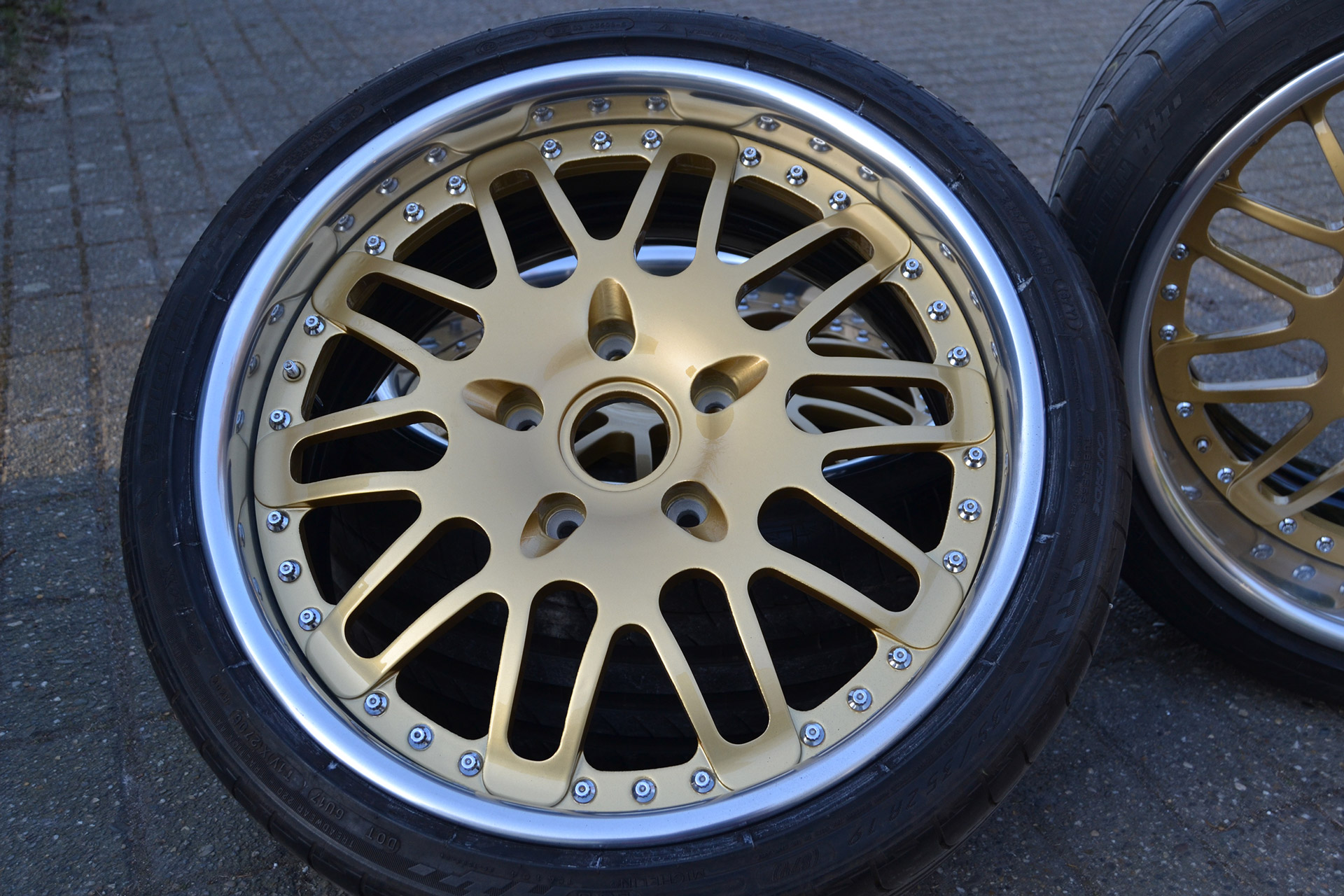 Nach dem Pulverbeschichten können die Teile auf Wunsch an bestimmten Stellen poliert werden und zum Schutz der polierten Flächen ergänzend Klar beschichtet werden (z.B. das Felgenbett wie es auf dem Bild unterhalb zu sehen ist).