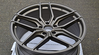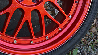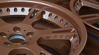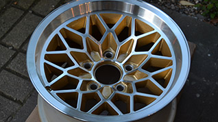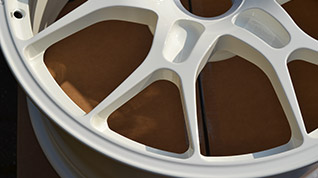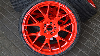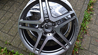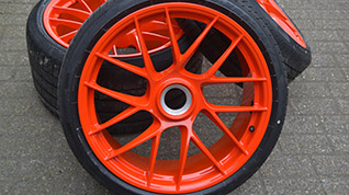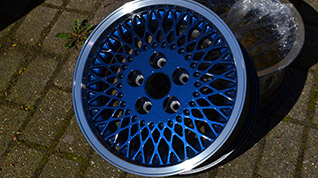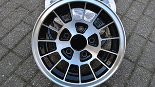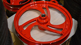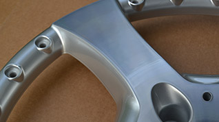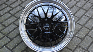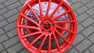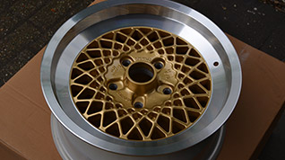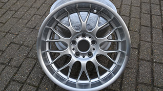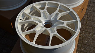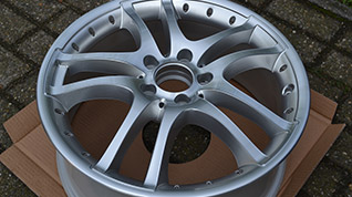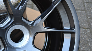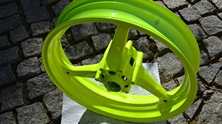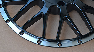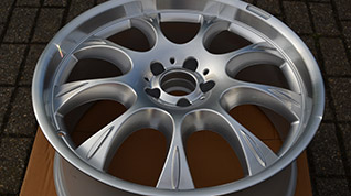 Nach dem Pulverbeschichten können die Teile auf Wunsch an bestimmten Stellen poliert werden und zum Schutz der polierten Flächen ergänzend klar beschichtet werden (z.B. das Felgenbett wie es auf dem Bild unterhalb zu sehen ist).