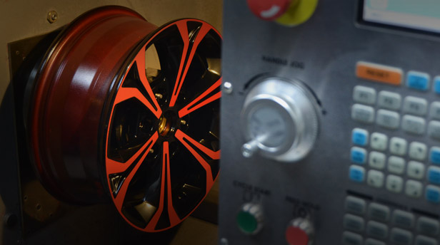 Seit kurzem haben wir nun auch das Glanzdrehen CNC in unser Programm mit aufgenommen. Beim Glanzdrehen wird die Oberfläche der Felge mithilfe einer sehr präzisen, computergesteuerten CNC-Maschine abgedreht, das Ganze mittels eines Diamant-Schneideinsatzes. Ziel ist es, Randstein- und Korrosionsschäden sowie veralteten Klarlack von der Felge zu beseitigen. Die Felge erhält so an den überdrehten Flächen ihren ursprünglichen, regenbogenartigen Schimmer zurück! Dieses Verfahren kann ebenso problemlos bei bereits pulverbeschichteten Felgen angewendet werden.